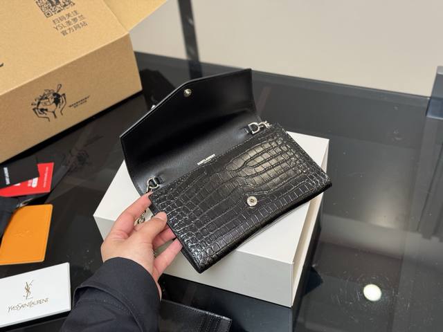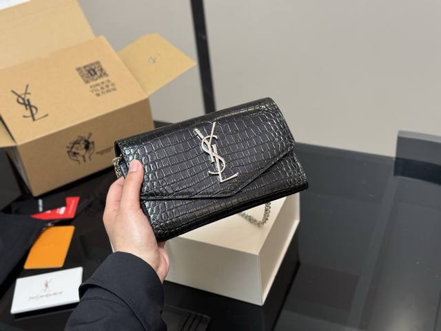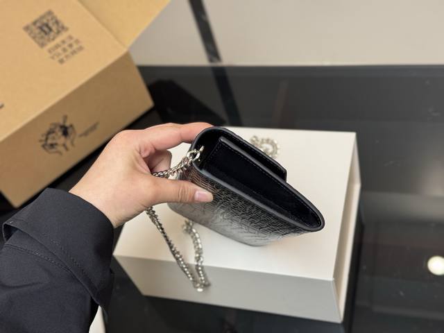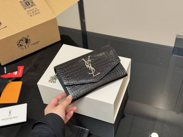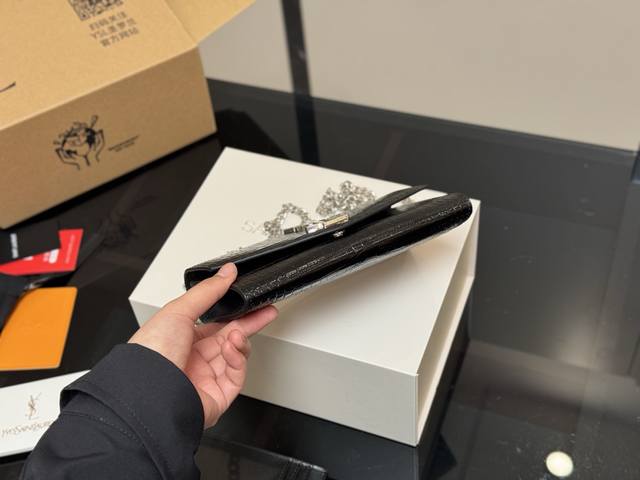 送镜子 Ysl Uptown_ 迷你信封包 最经:典的标志性金属Logo,搭配可拆卸链条肩背带,直接当手包意大利进口牛皮,肩带48Cm 尺寸: 19X12X4C