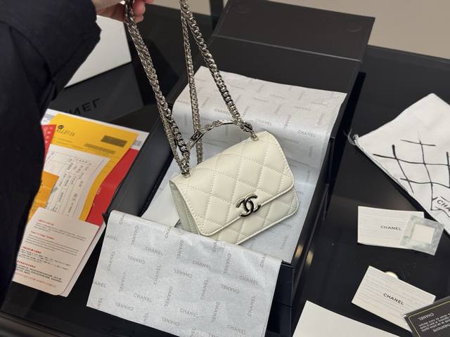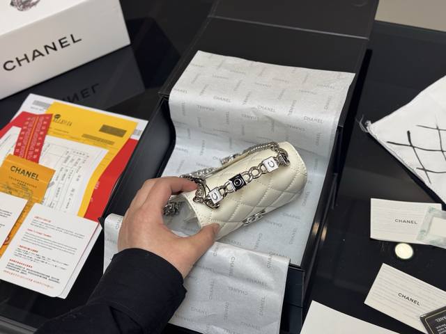 小号 香奈儿chanel 24A 新款抛光油蜡皮口盖包迷你链条包 尺寸18×12×5 礼盒包装