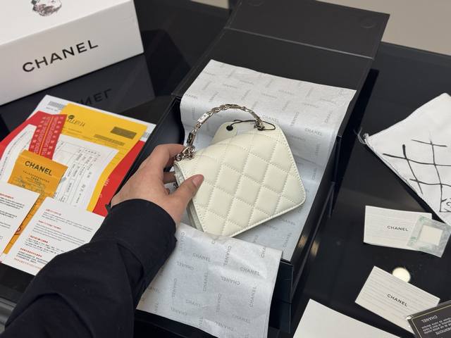 / 配折叠盒飞机盒 Size:13*10Cm 香奈儿珐琅手柄小废包 零钱包 口红包 银链配黑白珐琅 简直无法抗拒 Coco珐琅镂空手柄能不爱吗?