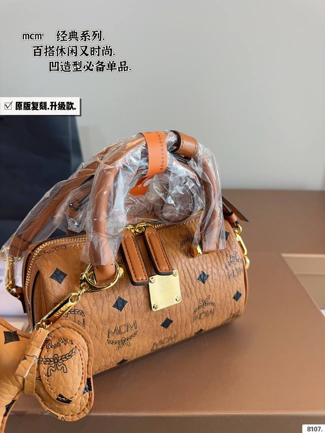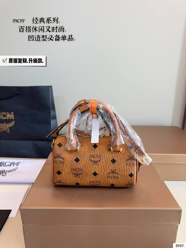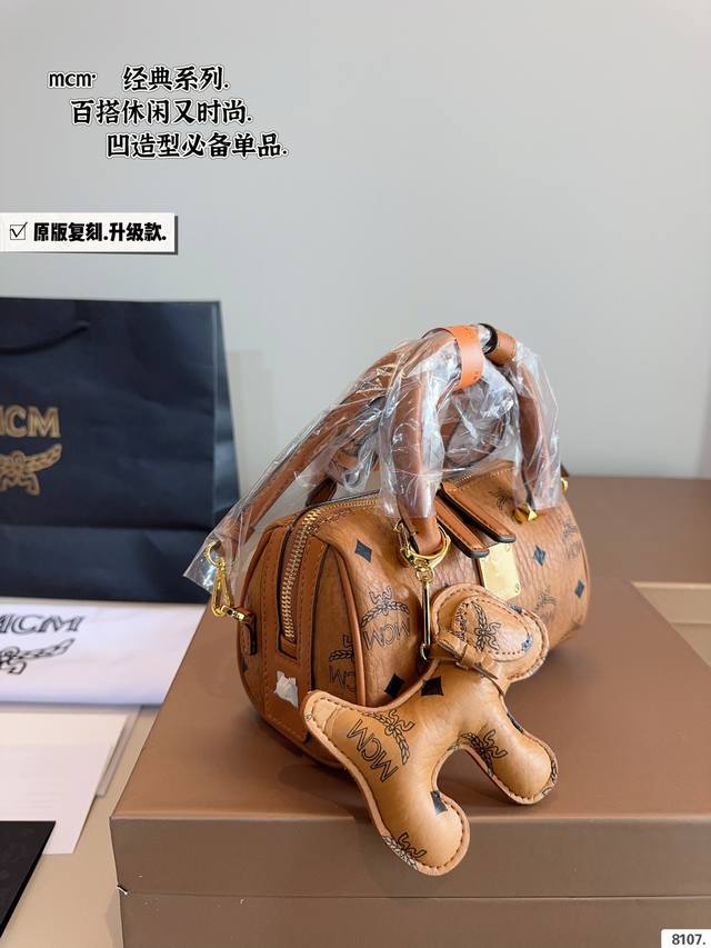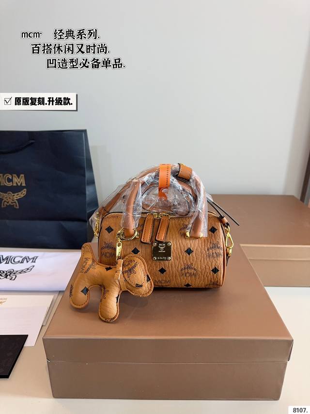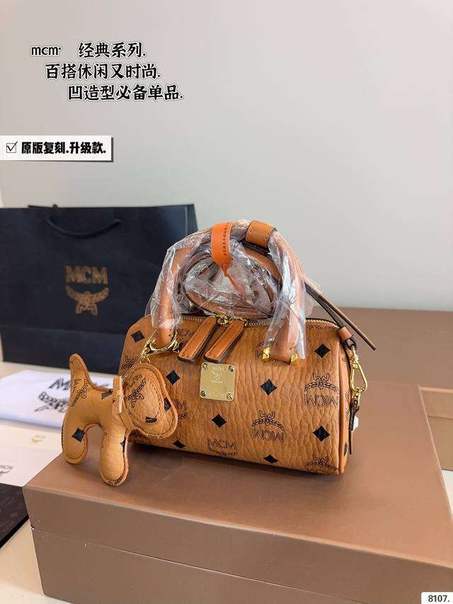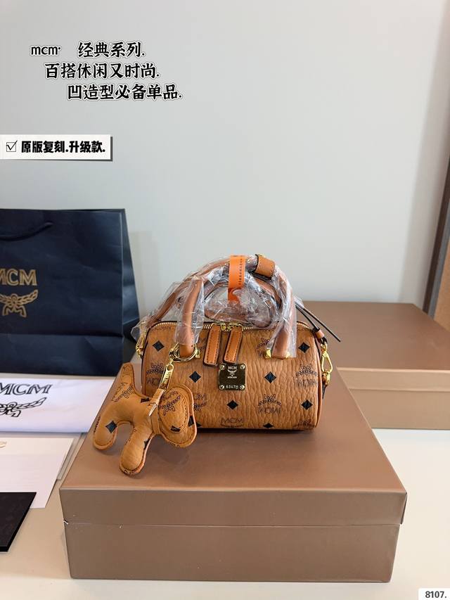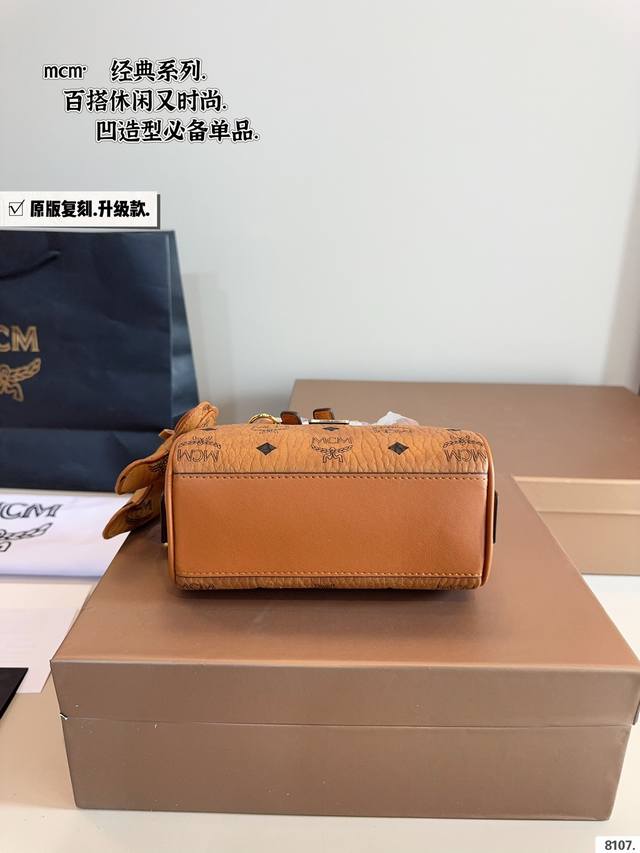 配礼盒 Mcm Mini 波士顿枕头包 简单百搭 颜值高 日常出街首选 潮酷时尚女孩必入款尺寸:18*9*11Cm