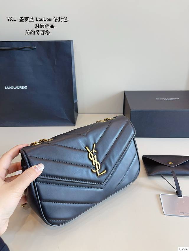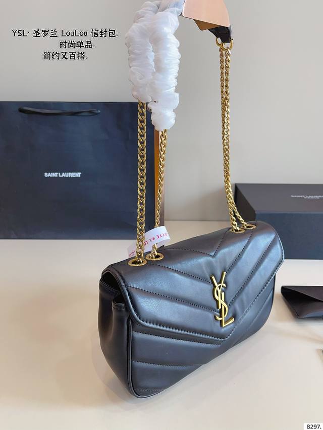 / 配礼盒. 圣罗兰Ysl 羊皮纹链条包. Loulou 信封包 经典包包推荐哦! 特别适合夏天的一款哦亲!尺寸:24*6*15Cm