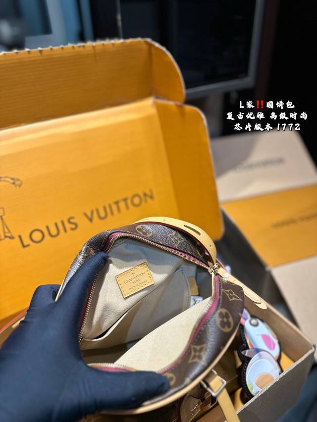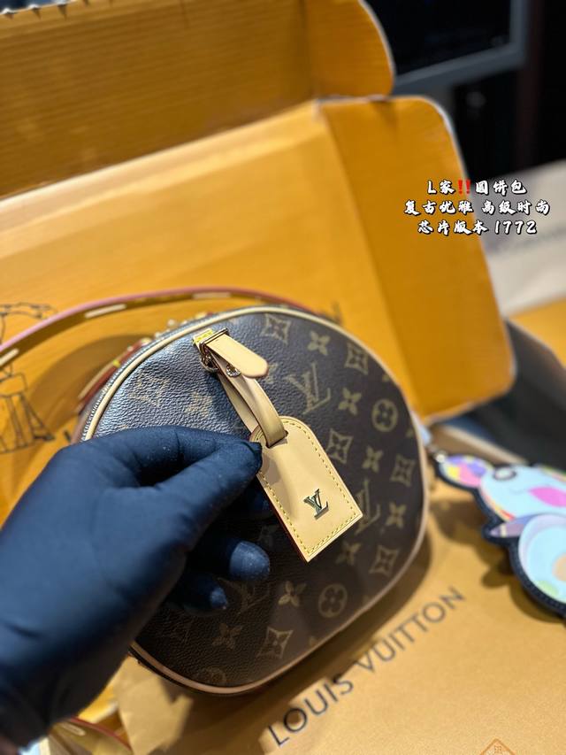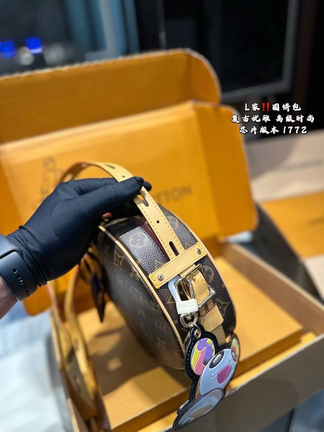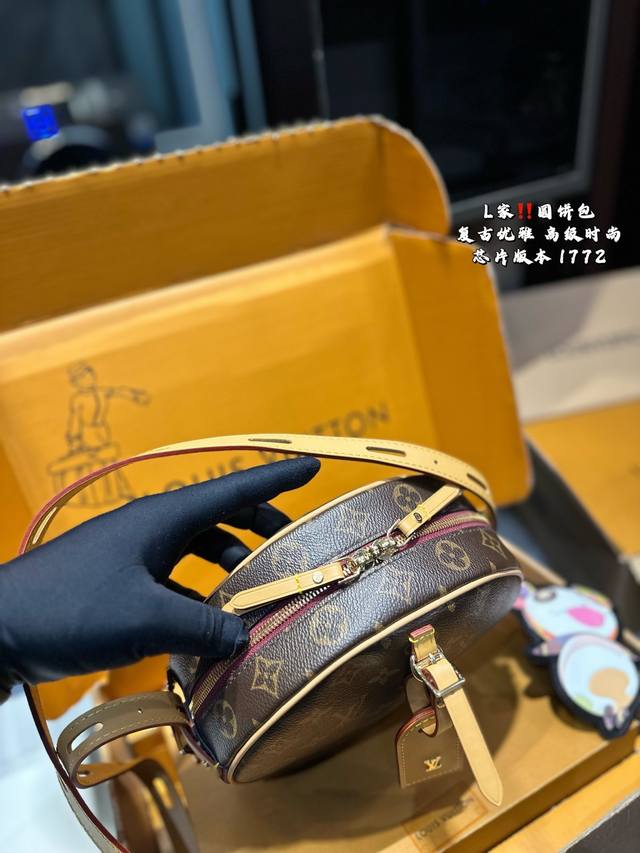 / 折叠飞机礼盒 Lv 圆饼包 送挂件 超正点“苹果”包进口蜜蜡黄皮 包身软软的,可盐可甜 双面设计Size:21*20Cm