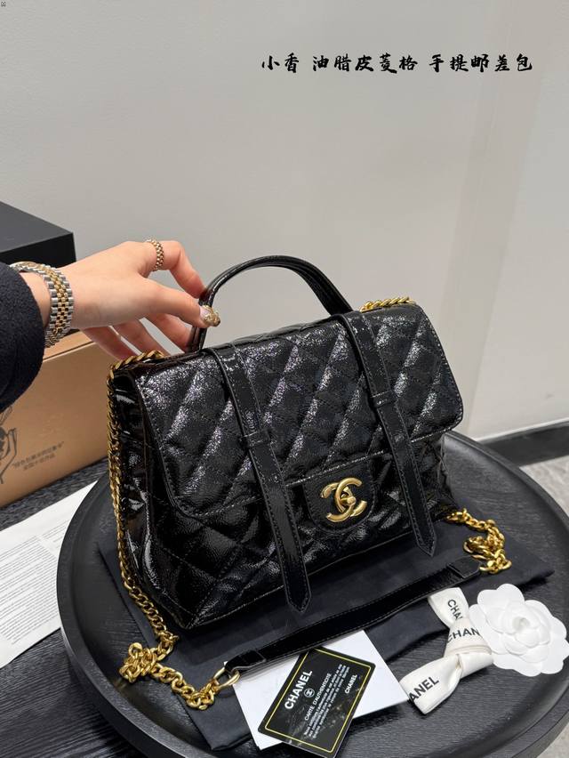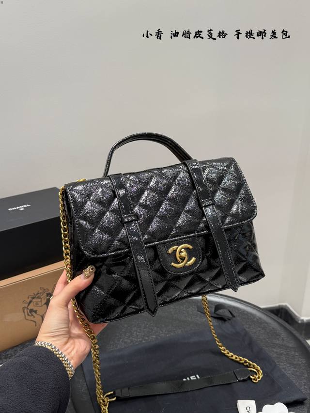 / 礼盒包装 Size:25 18Cm 香奈儿Chanel 亮面油腊皮菱格中古手提邮差包 这个保龄球包真的太香了~ 近期很有人气的一只Vintage Chanel