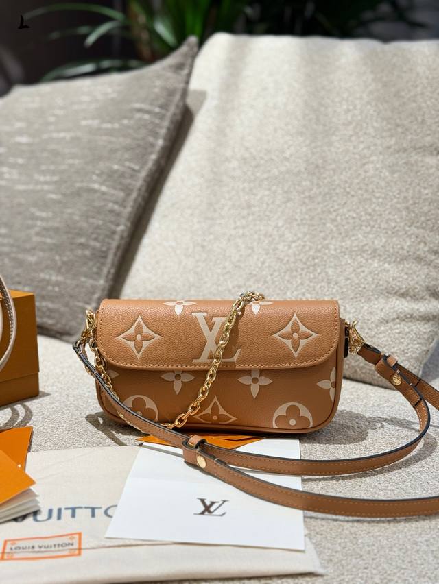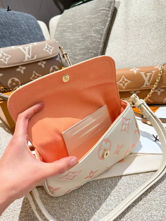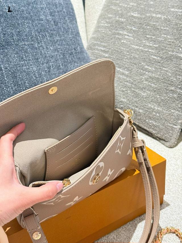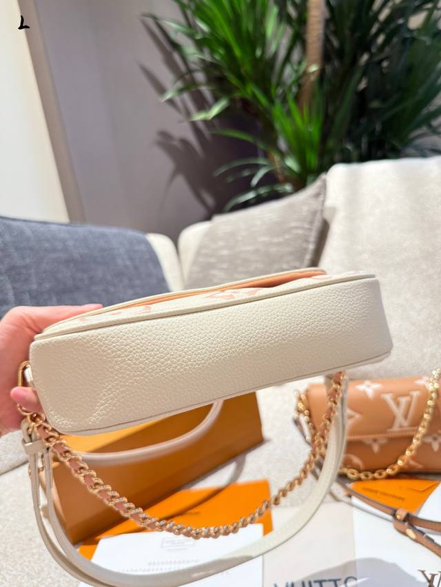 Wallet On Chain手袋取材Monogram帆布,灵感源自2000年代的Sacrecoleta手袋。全皮压花链条横款Woc小挎包Oo[握手][握手]卡片夹层和拉链内袋可容纳日常所需,链条和可调节皮革肩带均可拆卸,实现长短肩背和斜挎选择