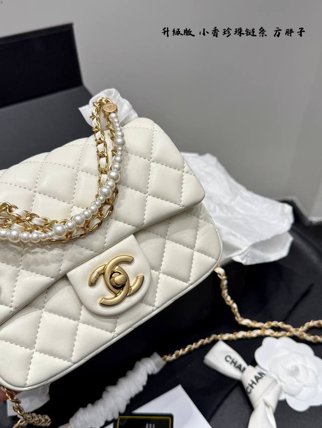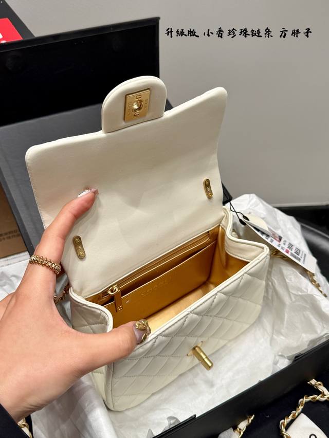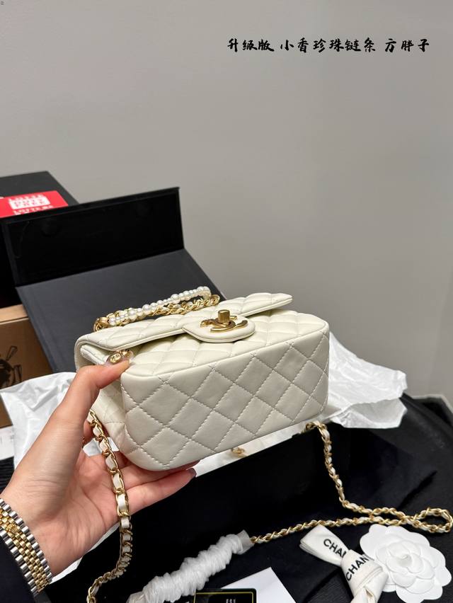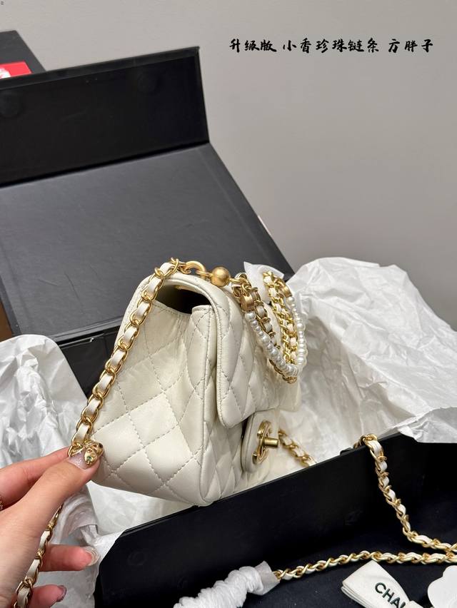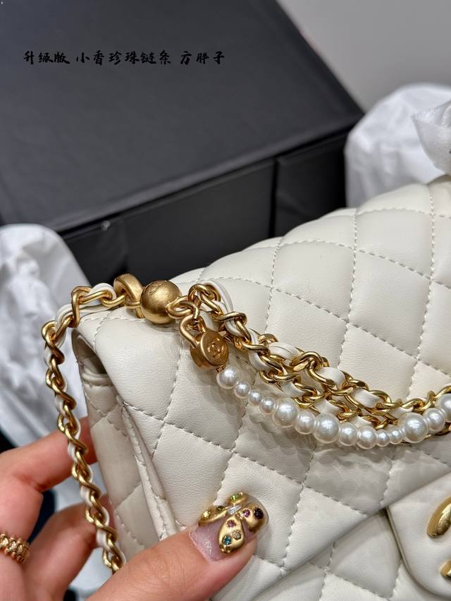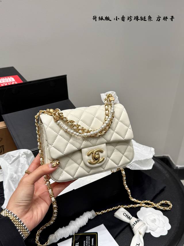 Chanel 24P这一季深挖还是有一些不错的款式的像这个珍珠方胖子大家记得要选17Cm小号哦实在是Soooo Cute萌萌哒亲测 珍珠链条不可拆卸但是可以手提真的好绝