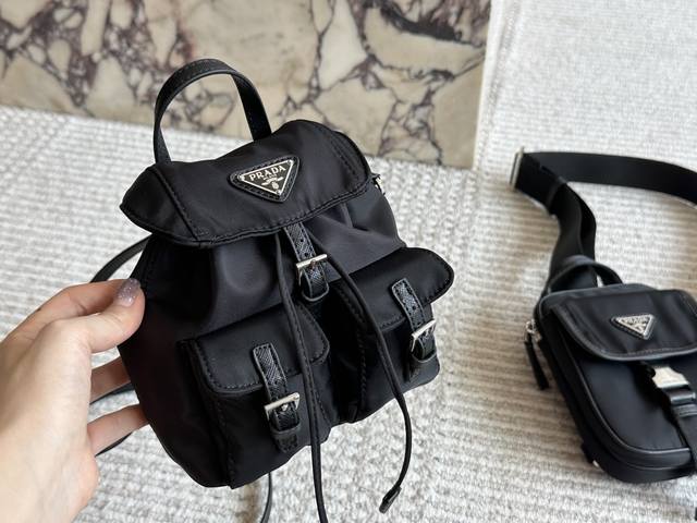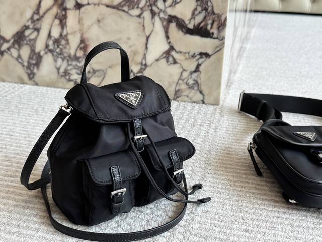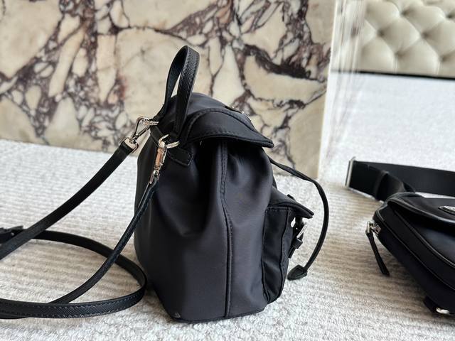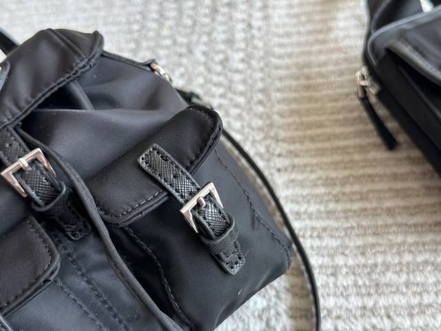 配盒尺寸26.21 普拉达 麂皮翻盖降落伞 Prada 质感很高级 容量超级大也很耐用 日常出街背它回头率百分百 就是这种随性慵懒感