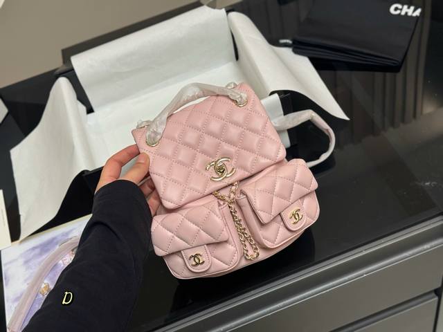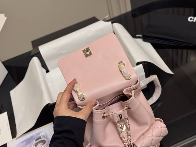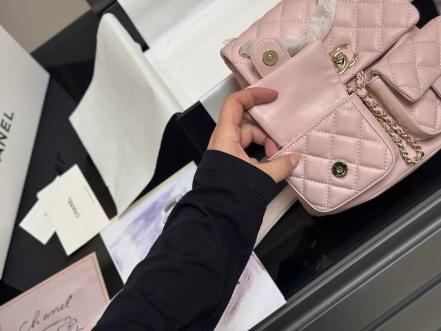 Chanel 机车双肩包 慵懒随性又好背 上身满满的惊喜 高级慵懒又随性 彻底心动的一只 Size:30 35Cm