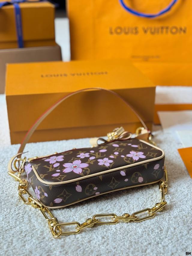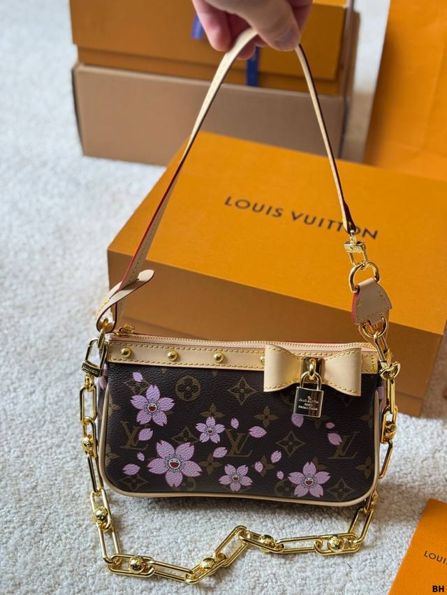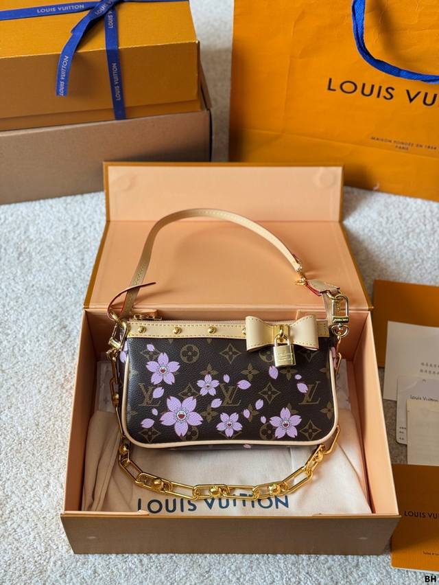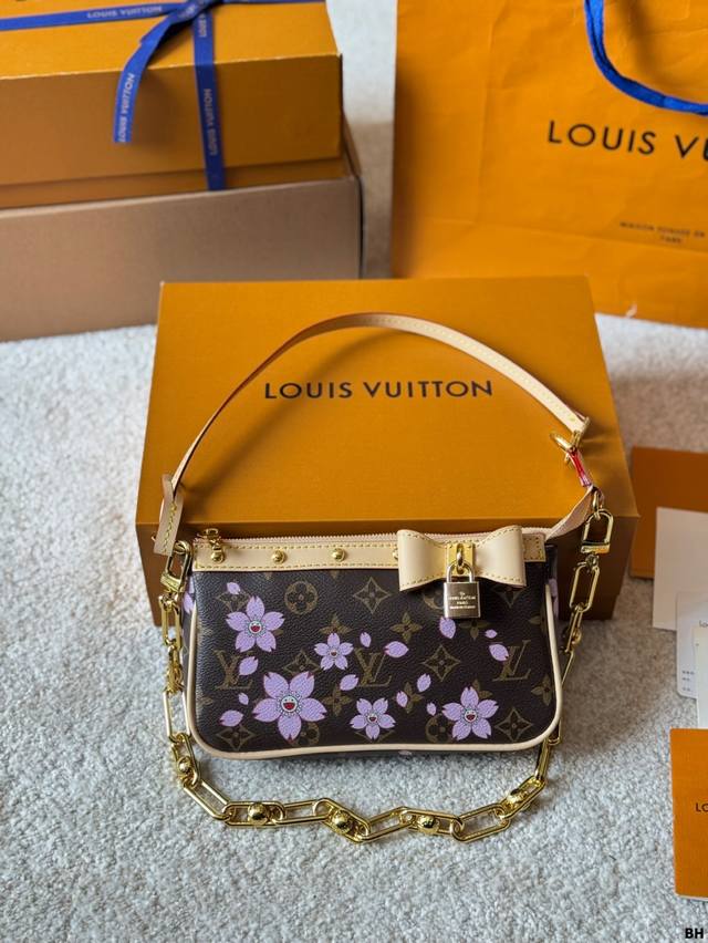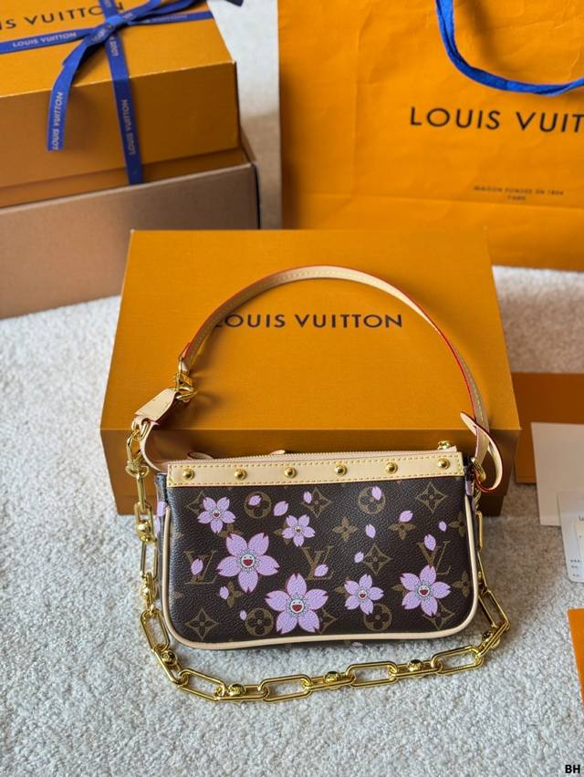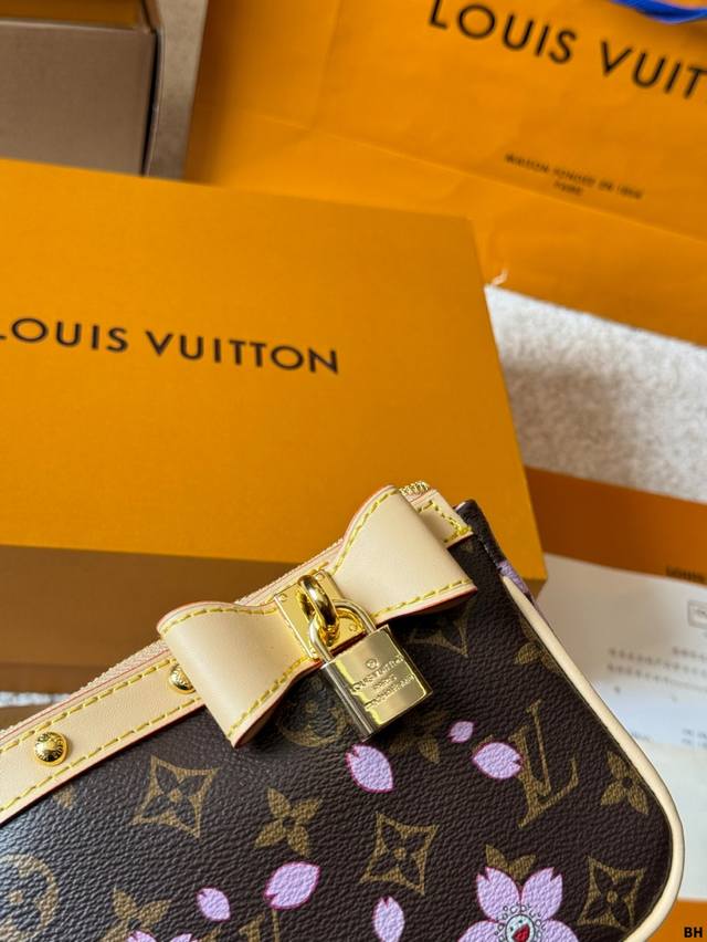 / 樱花系列 Lv村上隆联名款麻将包 2025早春走秀款 枕头包 Lv 路易威登 新款经典枕头包单肩斜挎女包 尺寸20 13Cm 折叠盒包装