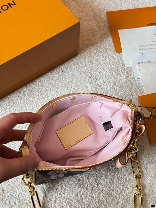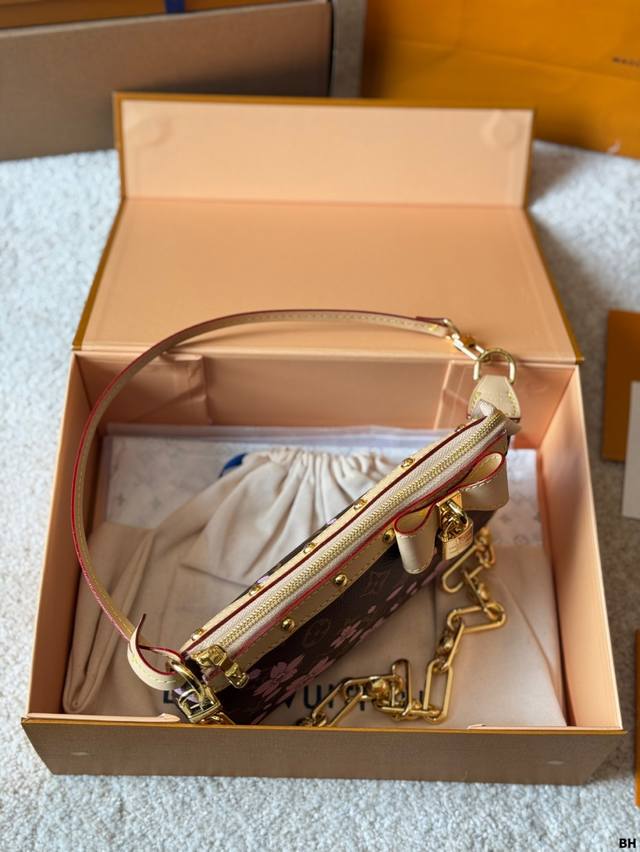 樱花系列 Lv村上隆联名款麻将包 2025早春走秀款 枕头包 Lv 路易威登 新款经典枕头包单肩斜挎女包 尺寸20 13Cm 折叠盒包装