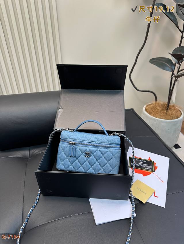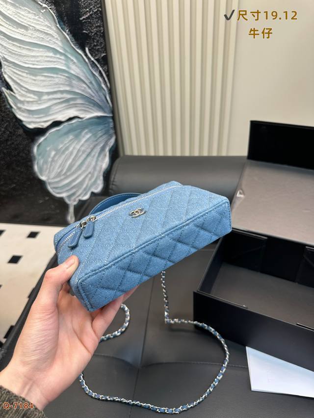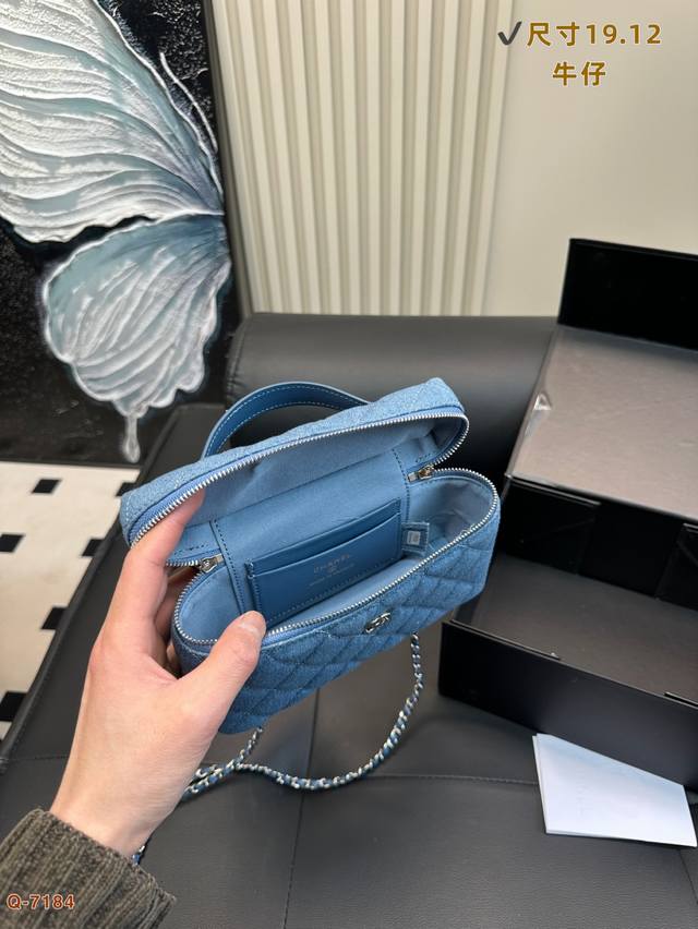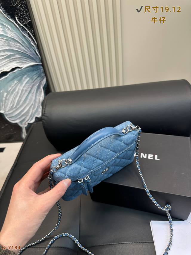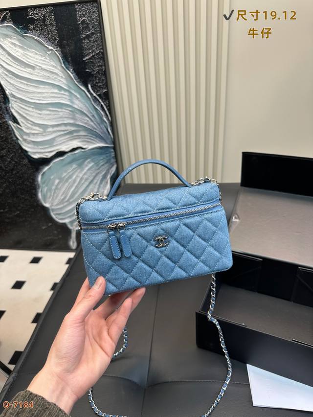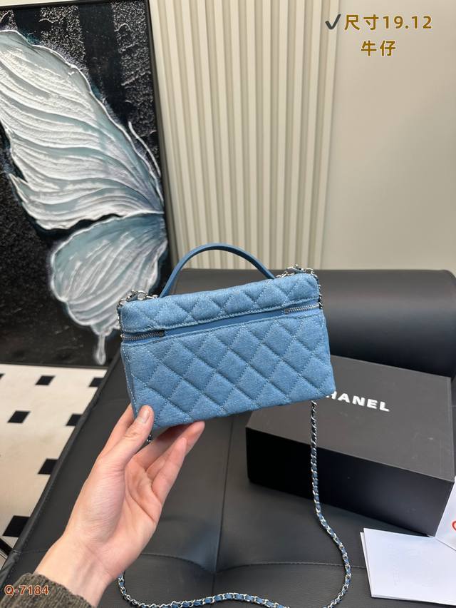 / 配折叠盒 香奈儿Chanel 25C 丹宁牛仔手柄盒子包拿在手上手感很轻巧 又轻盈又耐磨、谁不爱呢心 最棒的是链条可拆卸!可直接当手提包心~上身斜挎也完全不显臃