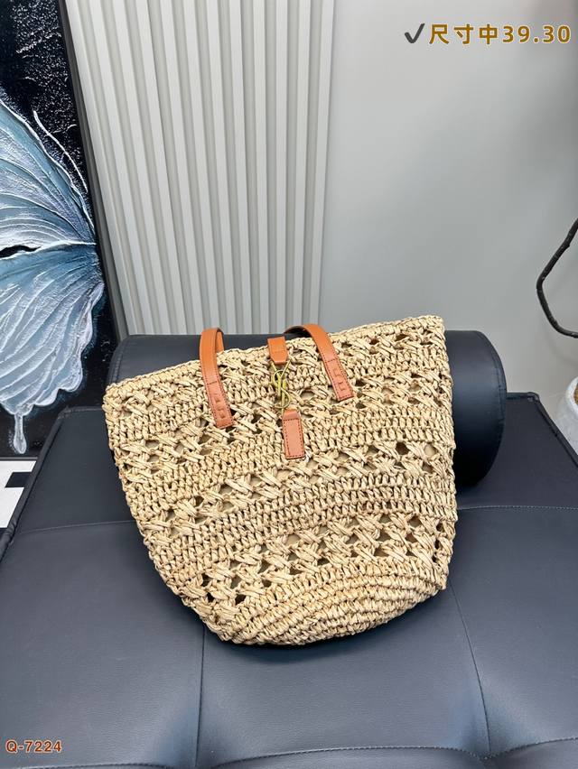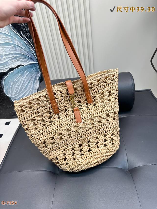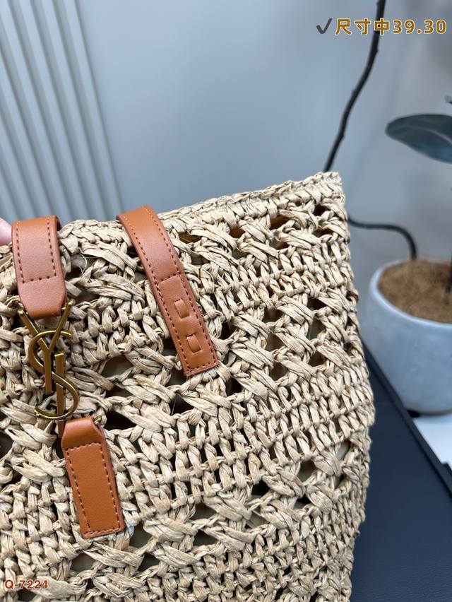Ysl新款拉菲草编织肩背包 新推出的这款 Oxalis 肩背包亦是度假玩耍的不二选择,镂空风格营造出轻盈透肤的视觉效果,又带一点小性感气质,包包中央饰有一枚 金色金属徽标成为点眼。尺寸中39.30
