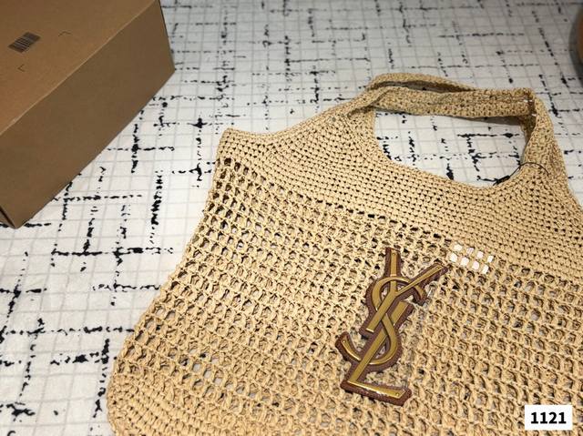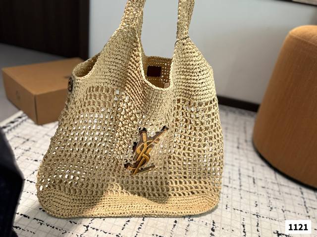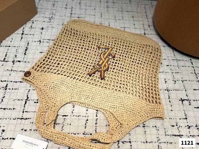 配盒子 Ysl圣罗兰 拉菲草编织购物袋 夏天背的包包真的太可爱了 背上一整个慵懒风 旅行拍照真的很Nice哦 每个小仙女夏季都该有一个草编购物袋!尺寸:48.45