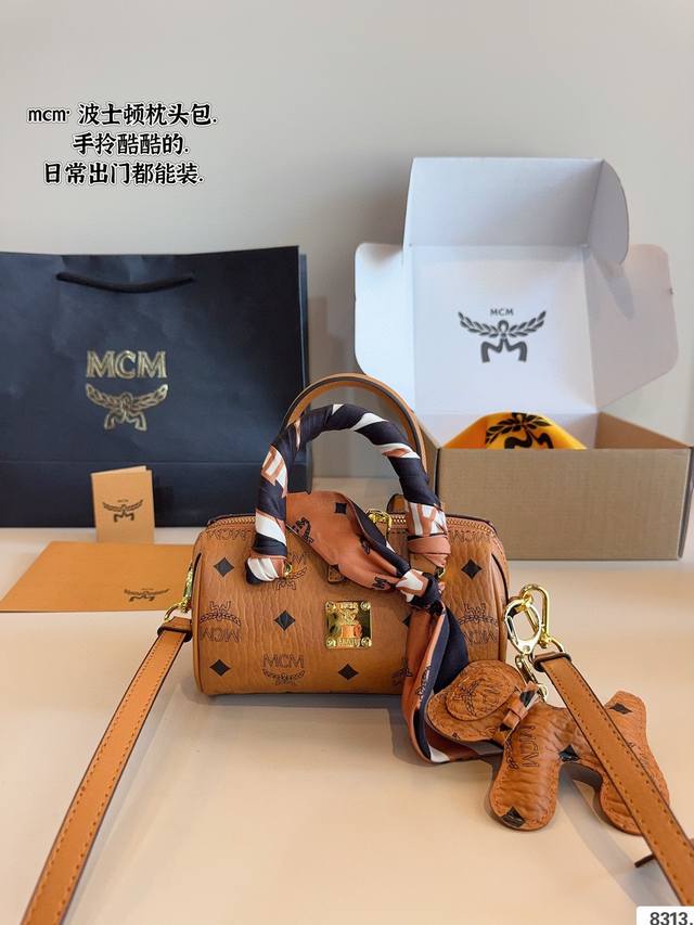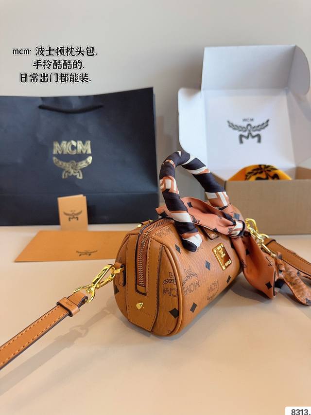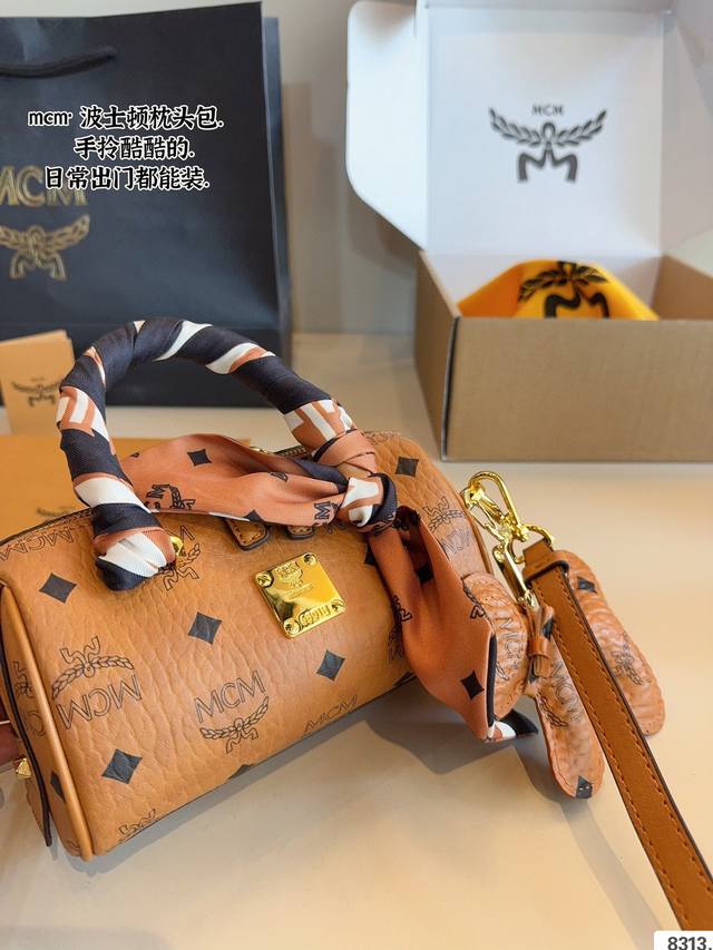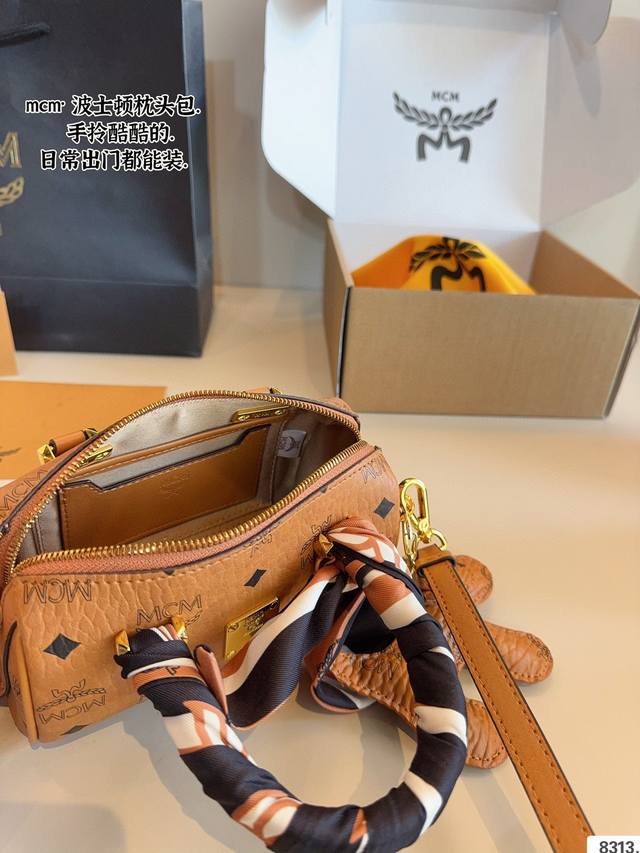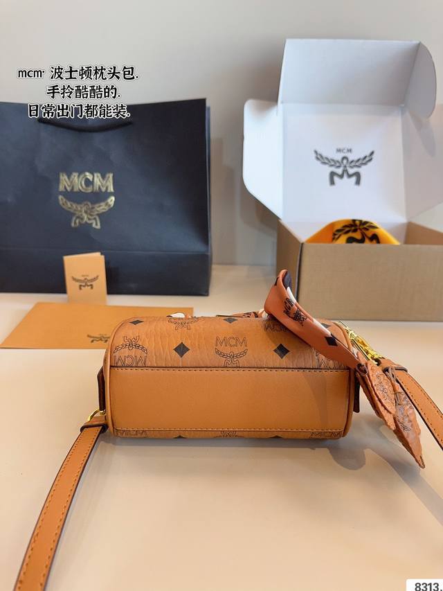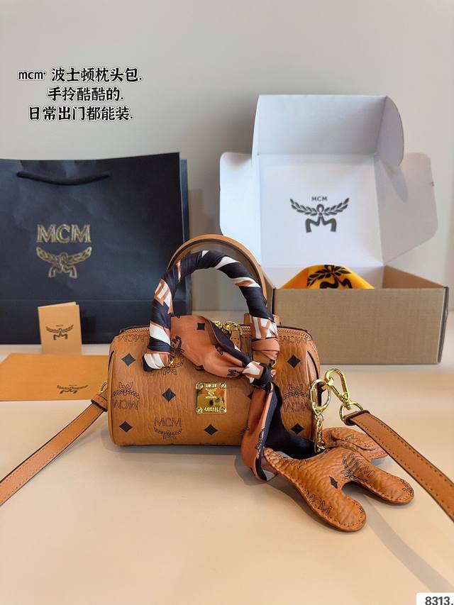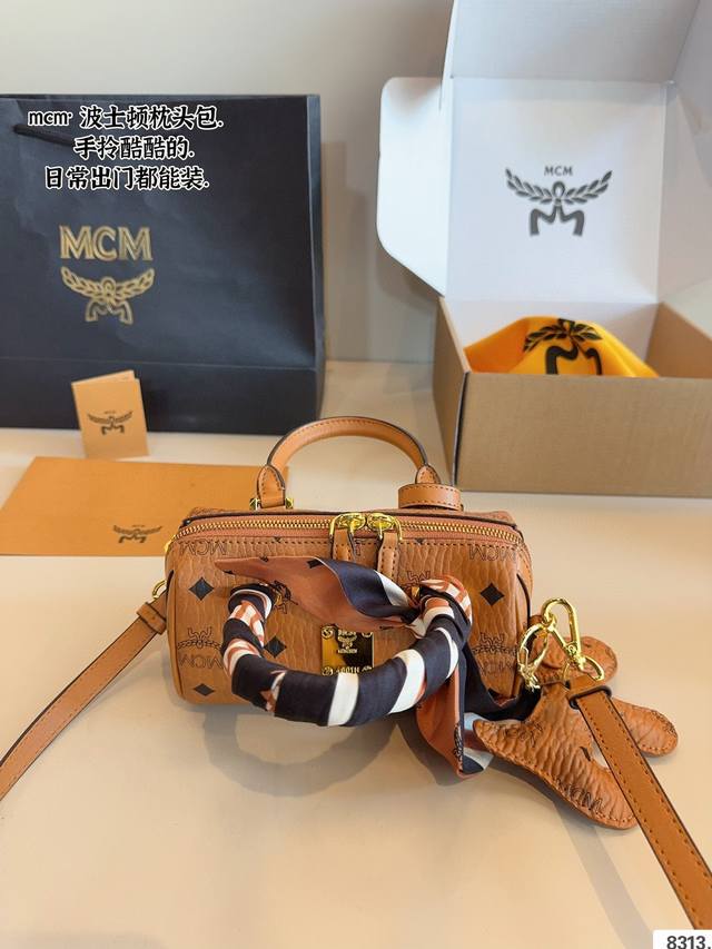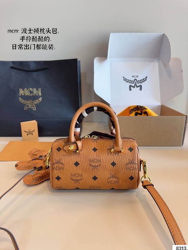配礼盒 Mcm Mini 波士顿枕头包 简单百搭 颜值高 日常出街首选 潮酷时尚女孩必入款尺寸:19*6*10Cm