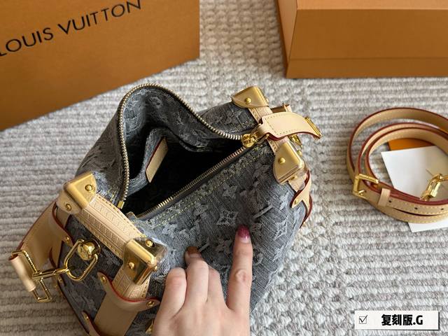 原单 Lv Speedy20手袋最新款刺绣肩带枕头包老花手提单肩斜挎包尺寸:20*13*12Cm 天然变色牛皮 原版五金 重工双面刺绣肩带 全套包装
