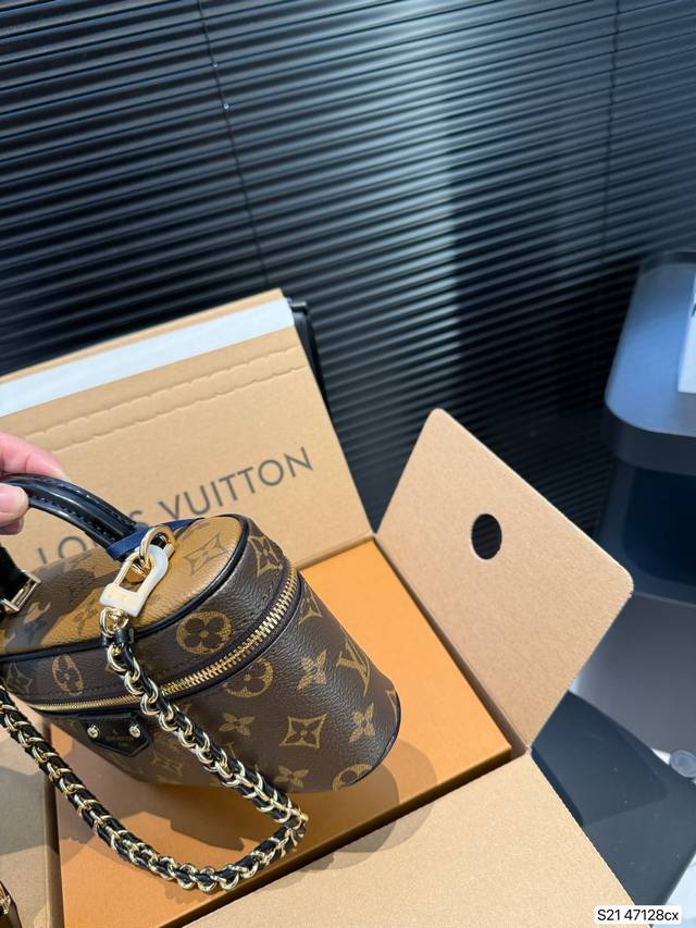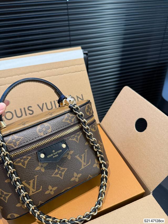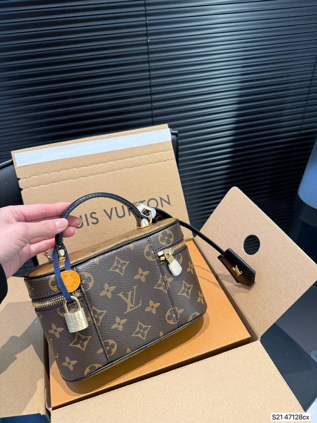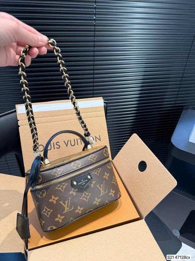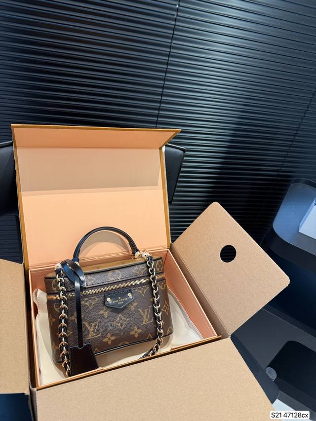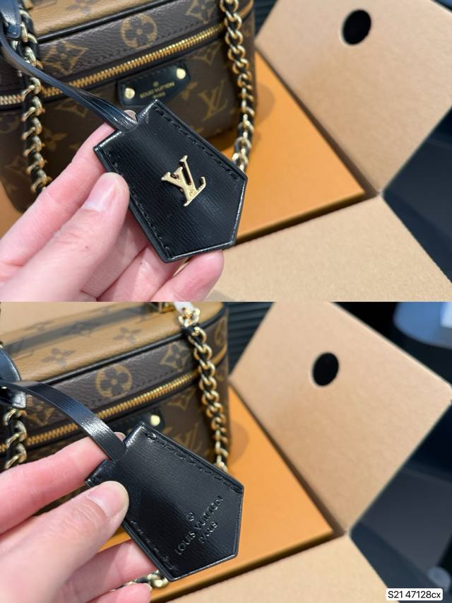 礼盒包装 Lv新款改款中古金属手柄手提小方包 简约设计,浓浓的复古风情! 单肩斜挎都很高级~...