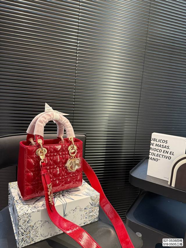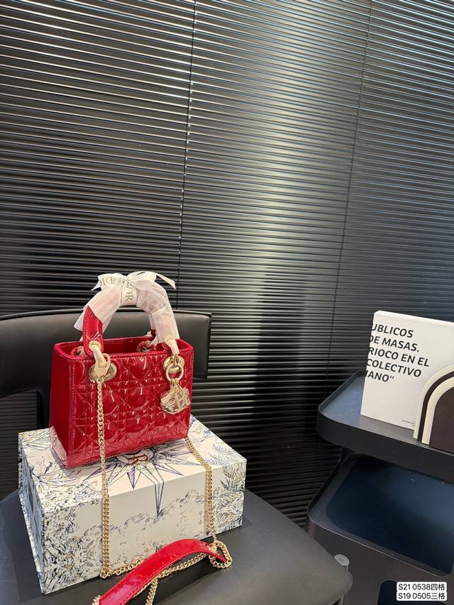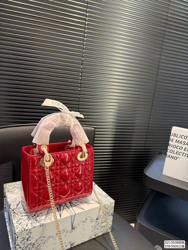 四格 三格 配折叠盒子 迪奥戴妃包中的辣妹小嗲精 单肩斜挎手提漆皮戴妃包 绝绝子上身感觉立马不一样了 戴妃这种经典的东西果然永远不会错 尺寸:四格20 17 三