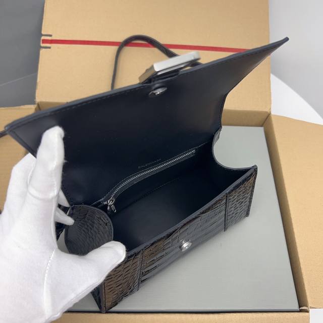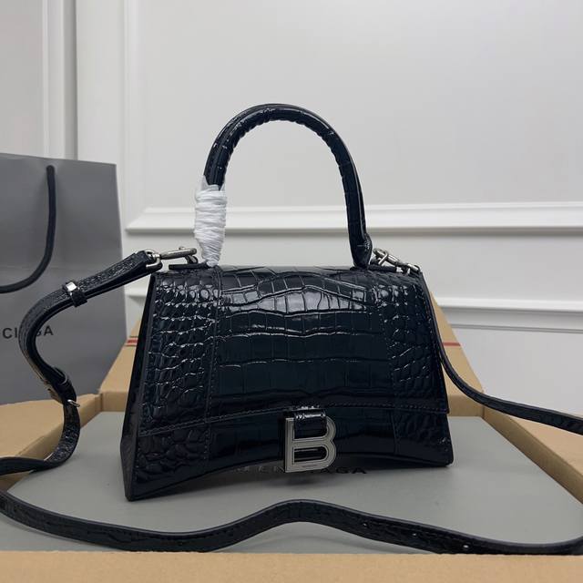 / 独家背景-实物实拍 鳄鱼纹黑色银扣升级版顶级原单,配全套包装,Balenciagα本季重磅Hourglass沙漏包,独特标的志性线弧形造状型极具识辨度,一眼就让