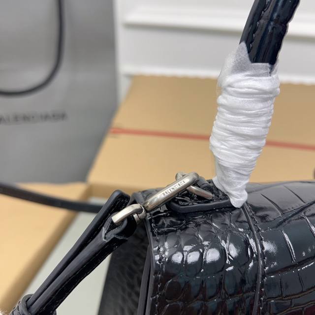 独家背景-实物实拍 鳄鱼纹黑色银扣升级版顶级原单,配全套包装,Balenciagα本季重磅Hourglass沙漏包,独特标的志性线弧形造状型极具识辨度,一眼就让
