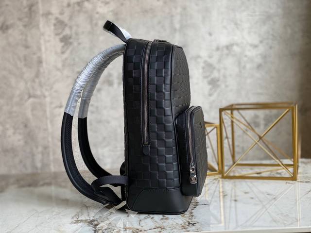 顶级原单 N40306全皮压格 双肩包系列 這款Campus背包採用Damier Infini皮革製成,印有路易威登標誌性的棋盤格紋圖案,並配以銀色拉鏈,背面以