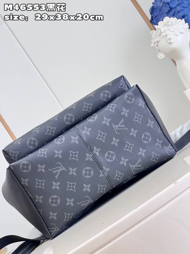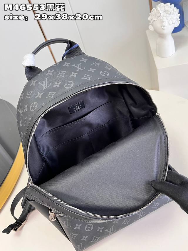 / 顶级原单 独家实拍 M46553黑花 本款 Discovery 双肩包以 柔软的 Monogram Eclipse 涂层帆布面料,辅以金属件的沉稳气息。外袋便于