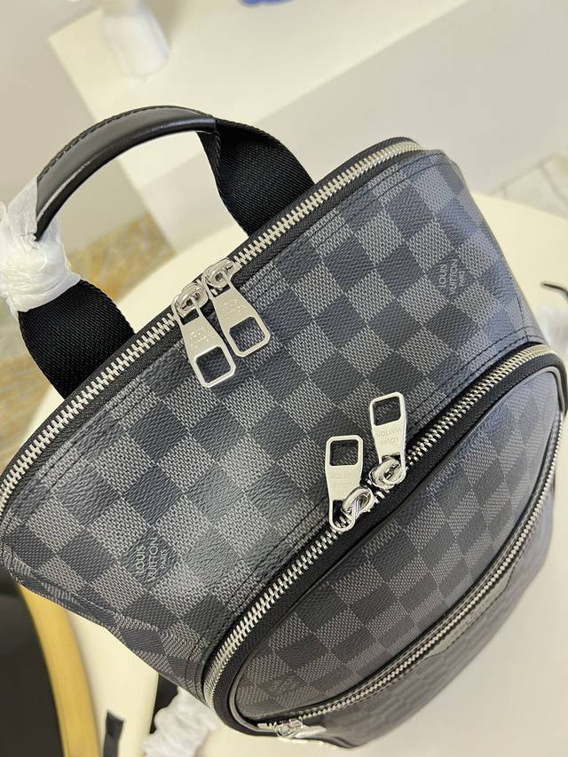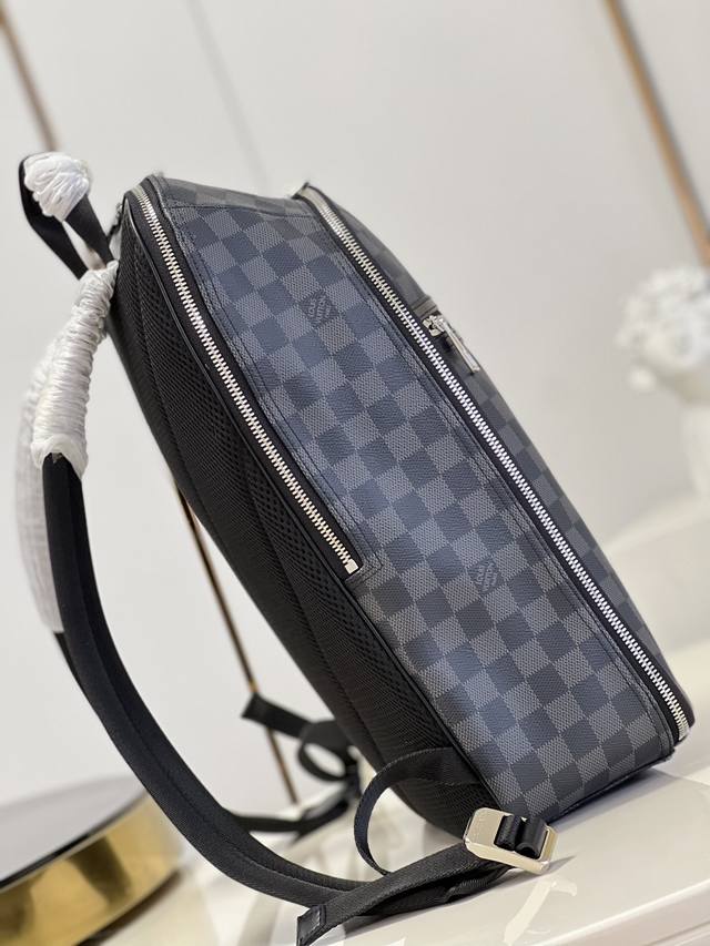 / 顶级原单 独家实拍N45287黑格 本款 Michael 双肩包为 Damier Infini Onyx 皮革压印 Damier 棋盘格纹,构筑设有笔记本电脑隔
