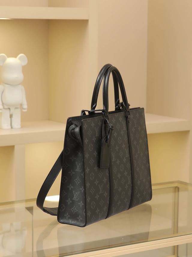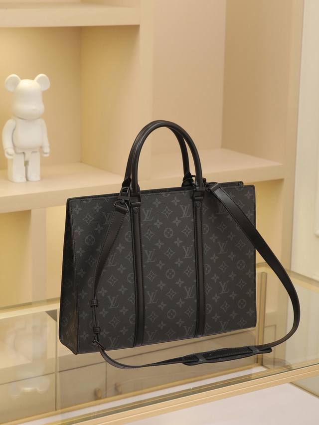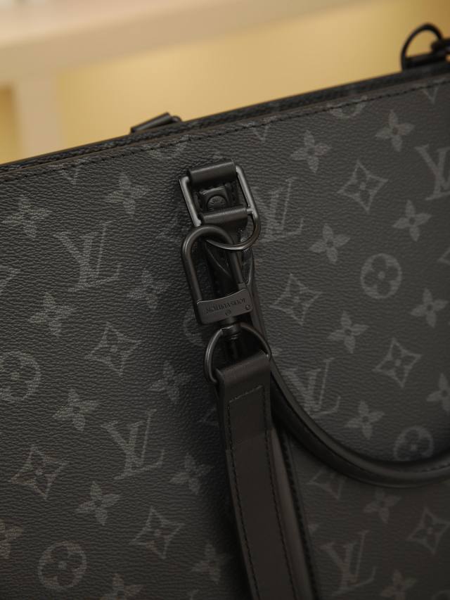 / 顶级原单变码芯片版 M45265黑花 独家背景 Sac Plat Horizontal Zippé 公文包取材 Monogram Eclipse 帆布和皮革,字