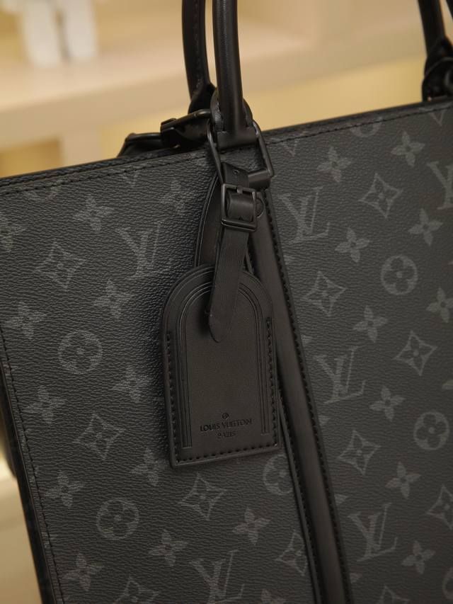 顶级原单变码芯片版 M45265黑花 独家背景 Sac Plat Horizontal Zippé 公文包取材 Monogram Eclipse 帆布和皮革,字