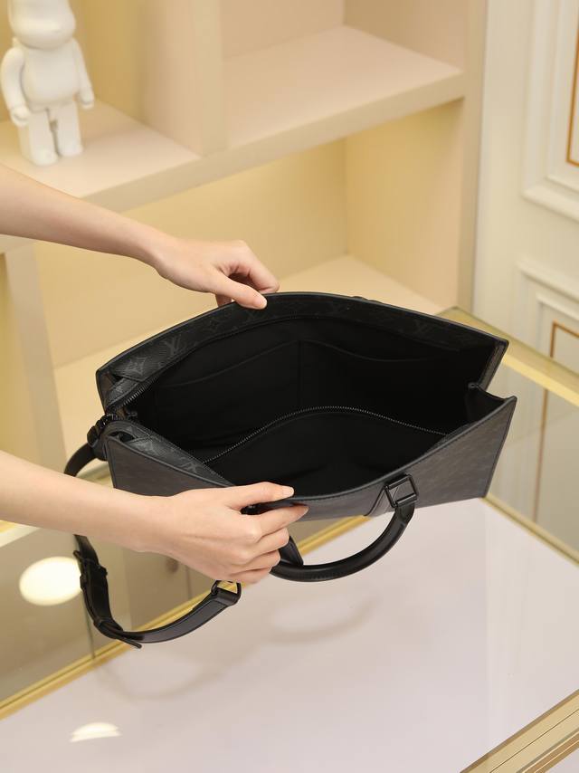 顶级原单变码芯片版 M45265黑花 独家背景 Sac Plat Horizontal Zippé 公文包取材 Monogram Eclipse 帆布和皮革,字母压纹与 Monogram 名牌致意品牌传承,利落线条抒写商务休闲新章,更有皮革手柄实现舒适手提。尺寸:31.0 X 39.0 X 8.5 Cm