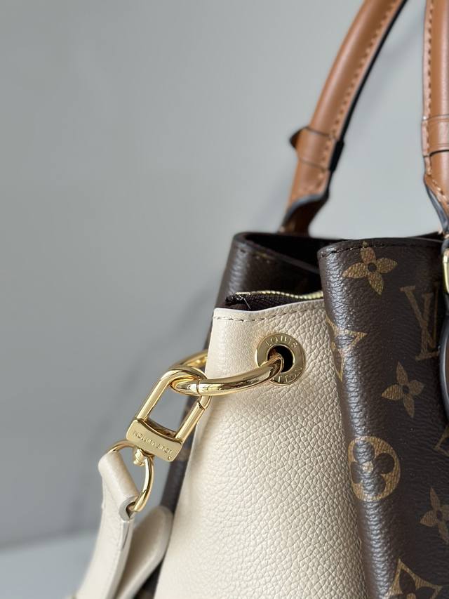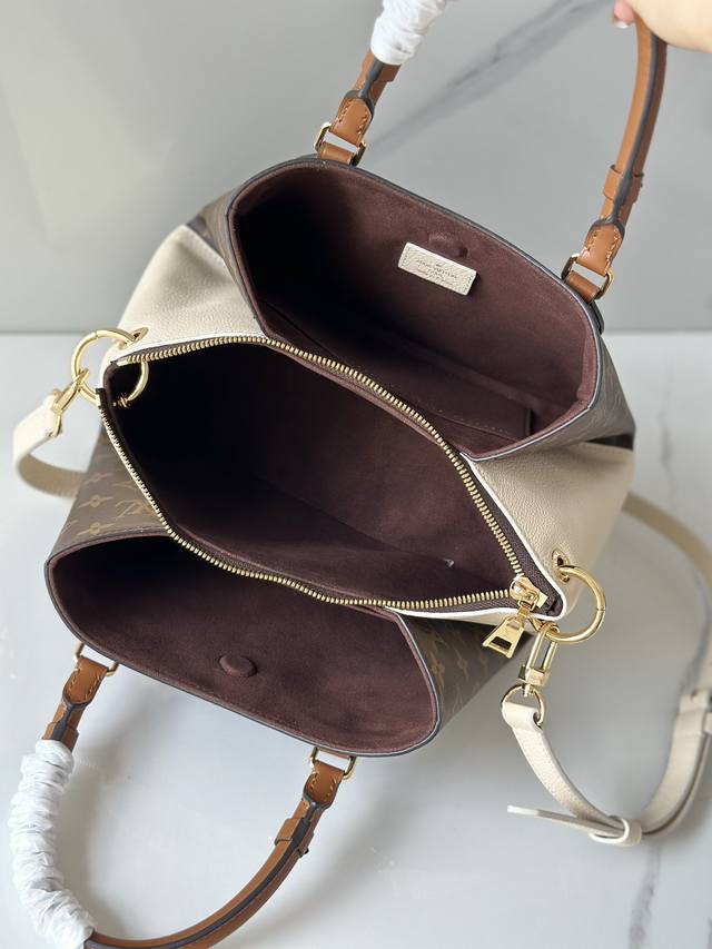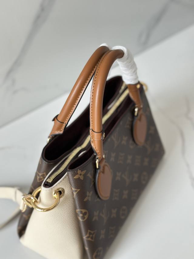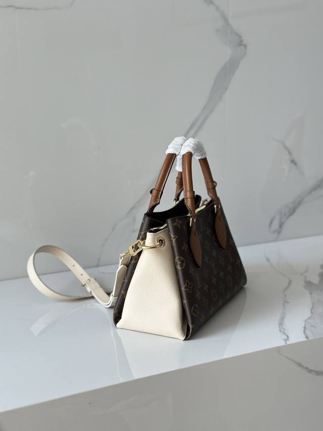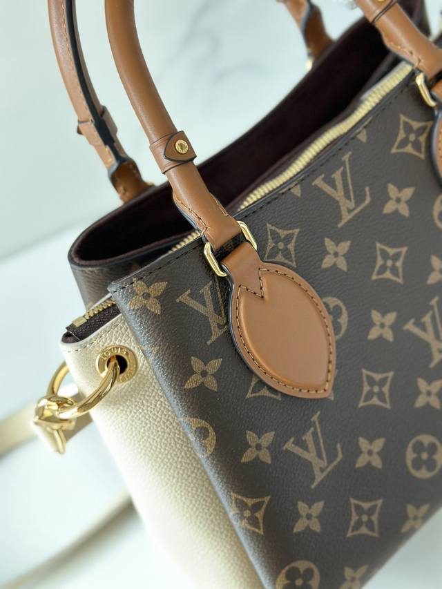 / 顶级原厂 M46495白色 OpéRa Bb 手袋拼接 Monogram 帆布、粒面皮革和光滑皮革,尽显路易威登的标志性格调。精巧铆钉点缀轧制皮革手柄,皮革手柄