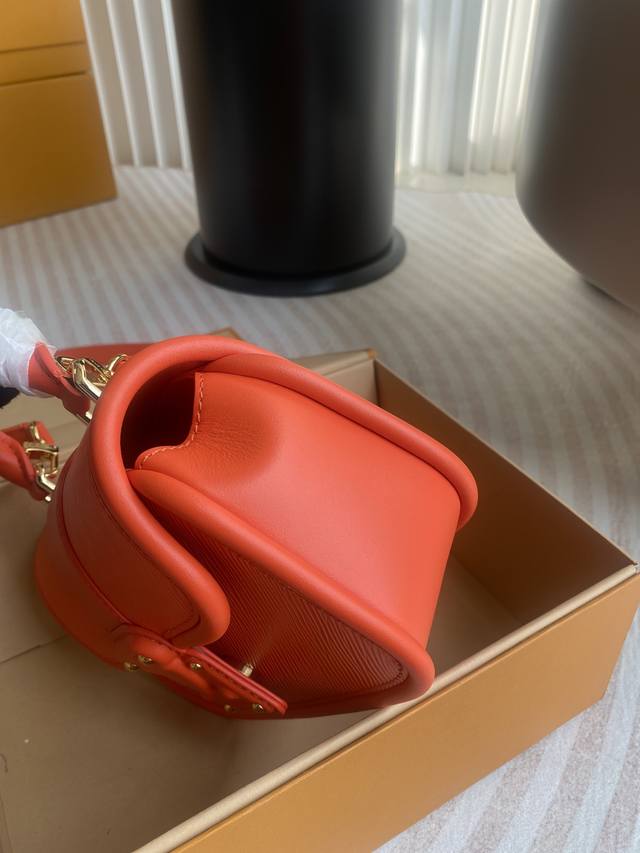 本款 Hide & Seek 手袋 M22723 为 Epi 皮革渲染明媚色调 以 Toron 辊压手柄和皮革包裹 S-Lock 锁扣溯源路易威登典藏设计 可拆卸肩带方便手提或斜挎 优雅穿梭昼夜场合。尺寸: 21X15X8Cm