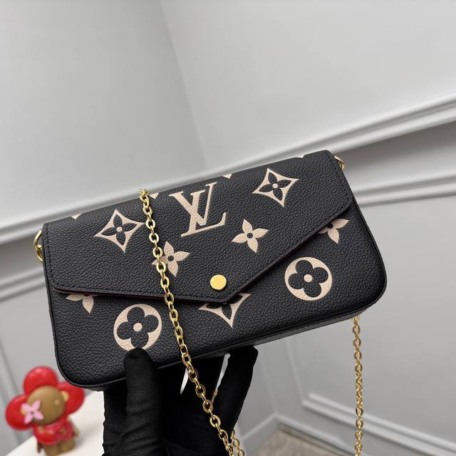 / 顶级原单 M80482黑本款 Pochette FéLicie 链条包为 Monogram Empreinte 皮革描绘 Monogram 印花,其信封式构型包