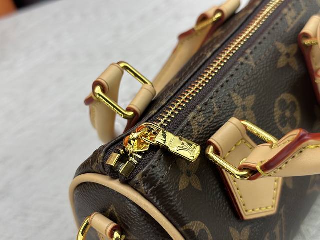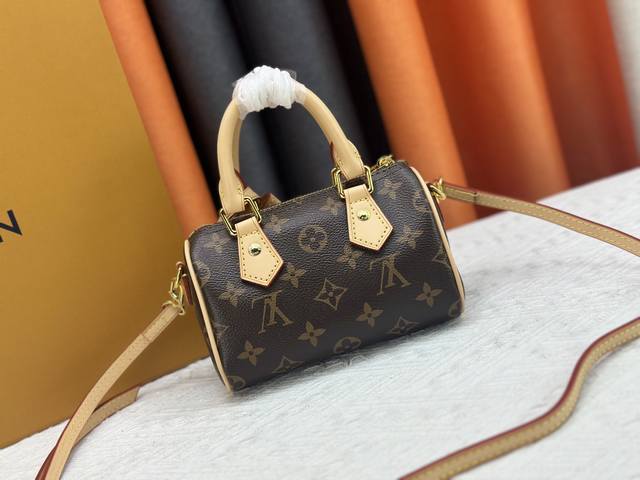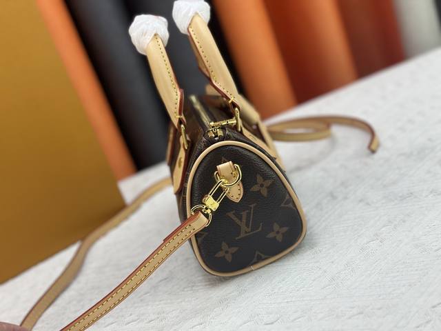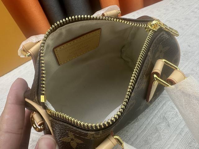 以经典改版的Monogram Hl帆布制成的Nano Speedy手袋,散发极致女人味,是您携带日常用品的理想之选。这款手袋是原型Speedy手袋的完美迷你版,缝线精致,轻盈无比,肩带可调节、可拆卸