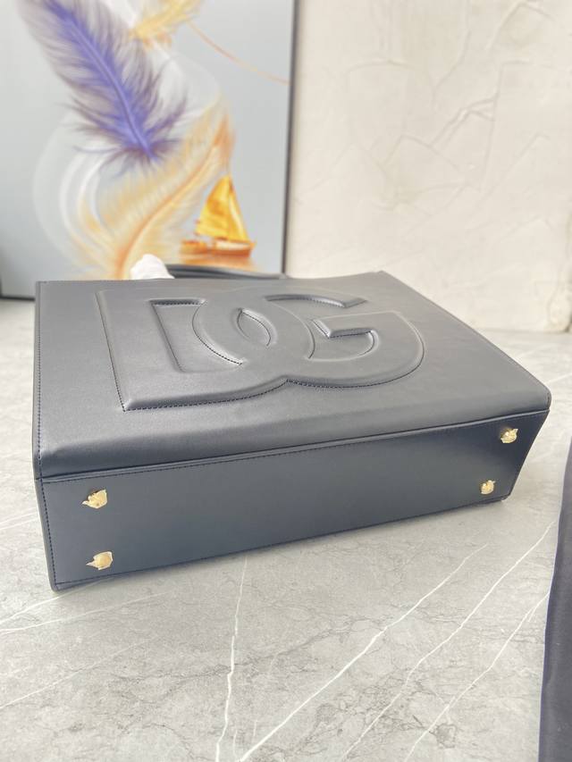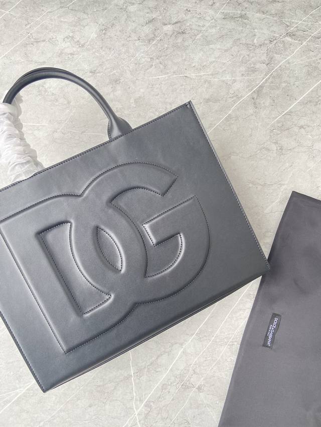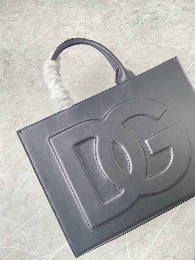 Dg Daily 系列全新大号创意托特包,完全采用光面小牛皮制成,可轻松收纳各式常用物件。包身正面点缀高频工艺 Dg 徽标: