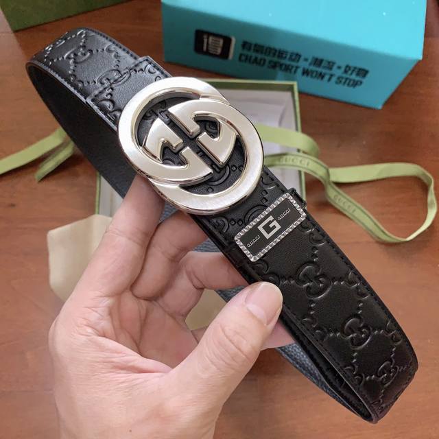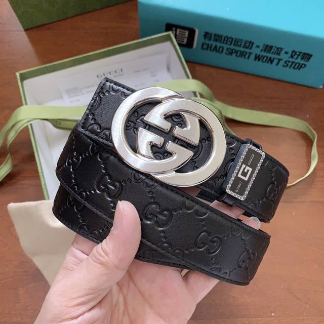 配图片正版包装,古奇专柜正品款,精品纯钢新款内穿式双g扣,经典原厂头层牛皮系列,原版标准3.8Cm宽度