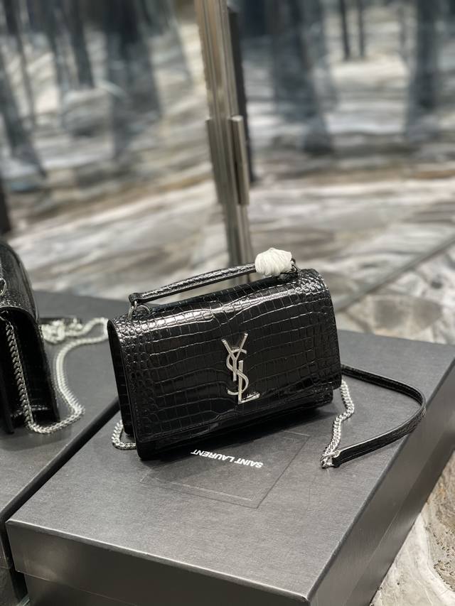 / 黑色银扣鳄鱼纹_ 来了!来了!新款日落包鳄鱼纹版本它来了!延续经典的Sunset翻盖外形轮廓,对细节进行了一系列小改变,例如顶部增加了真皮手腕,肩带可以自由拆