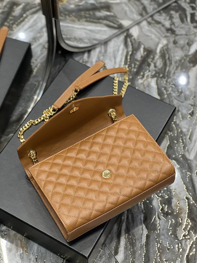 中号粒面压花绗缝真皮信封包