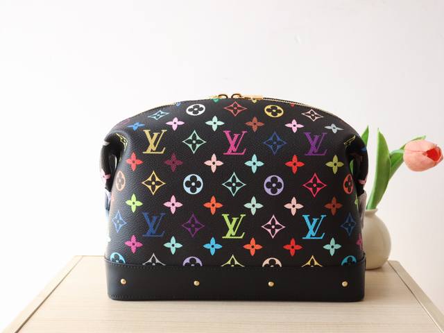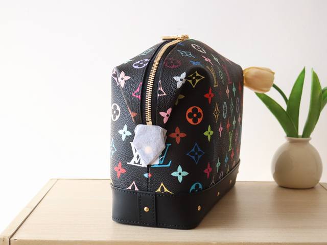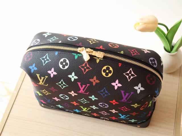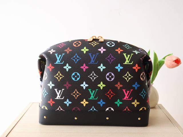 m13743三彩 化妆包以Monogram Denim面料裁出新潮闲适构型。时髦褪色牛仔色调浸染认证棉帆布,搭配牛皮革饰边与耀目铆钉。充裕空间可容纳化妆品及个人