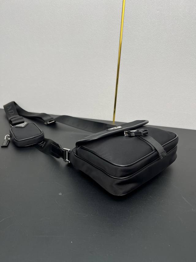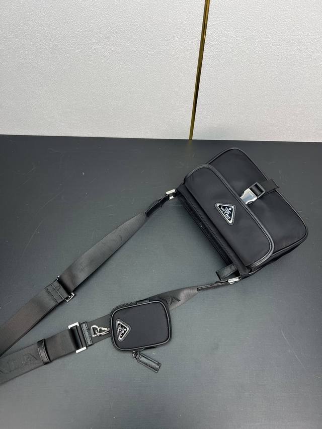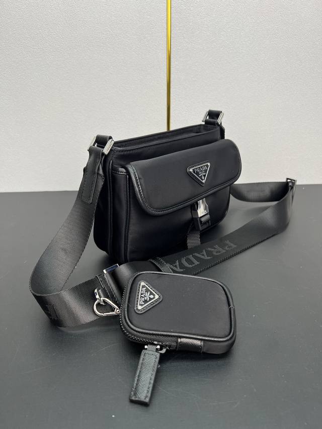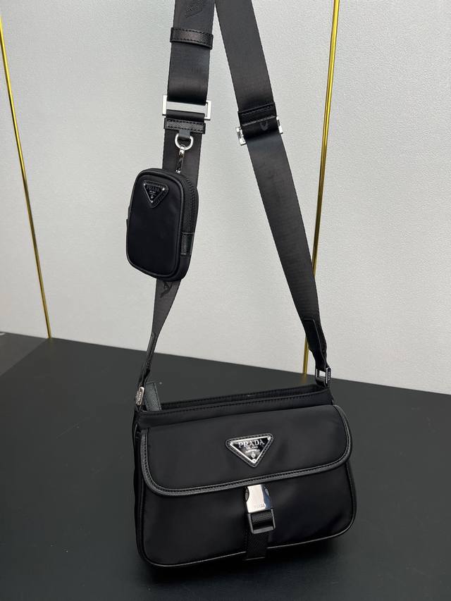 这款单肩包配有正面翻盖,采用标志性的Saffiano皮革和Re-Nylon再生尼龙材质打造。再生尼龙纱线Econyl通过提纯海洋塑料、渔网和纺织纤维回收物制成。营造别致的混搭设计格调。配有可调式编织尼龙带和皮革肩带和可拆卸小袋,上身效果非常酷简约又大气,帅哥们,赶紧入手吧