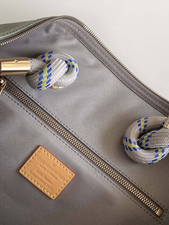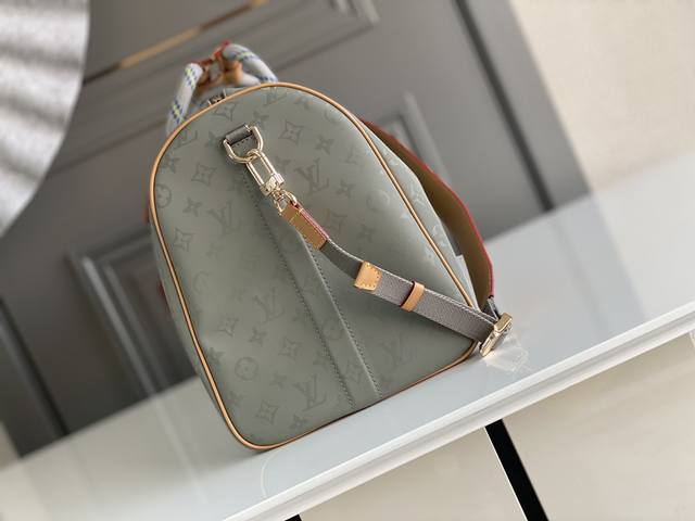 顶级原厂 M43886 Keepall 50 旅行袋 配肩带 原创Keepall 50旅行软袋,以2018-19秋冬男士时装秀中的关键面料为基础的特别版设计。灰