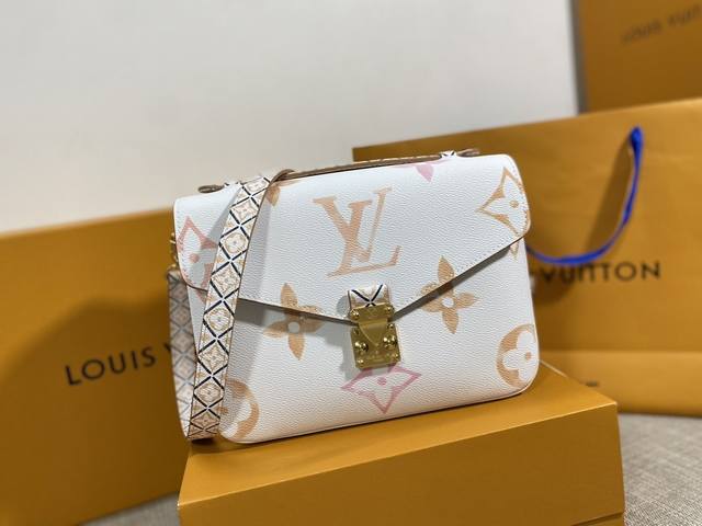/ 顶级原厂 复刻独家实拍M23055杏,本款 Pochette Metis 手袋以帆布烘托 Lv 字母和 Monogram 花卉的水彩效果,为顶部手柄和可拆卸肩带