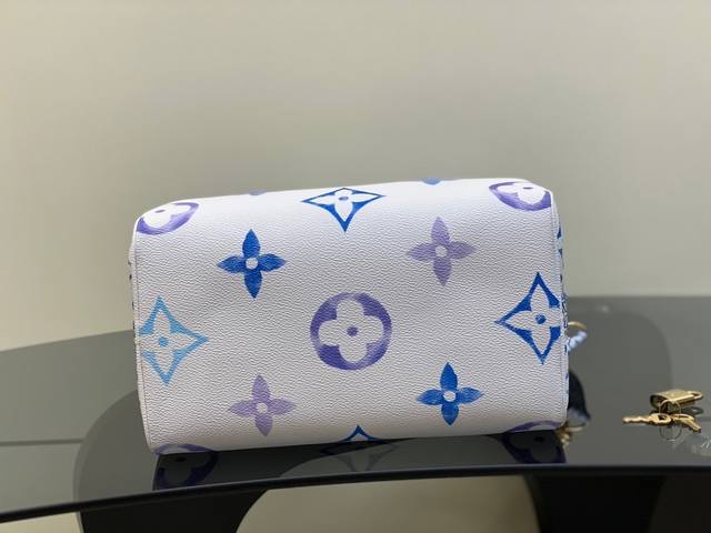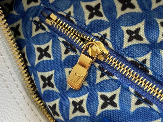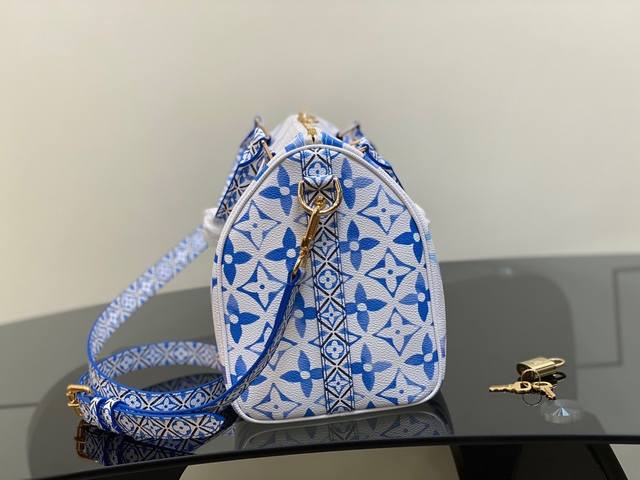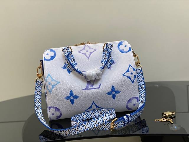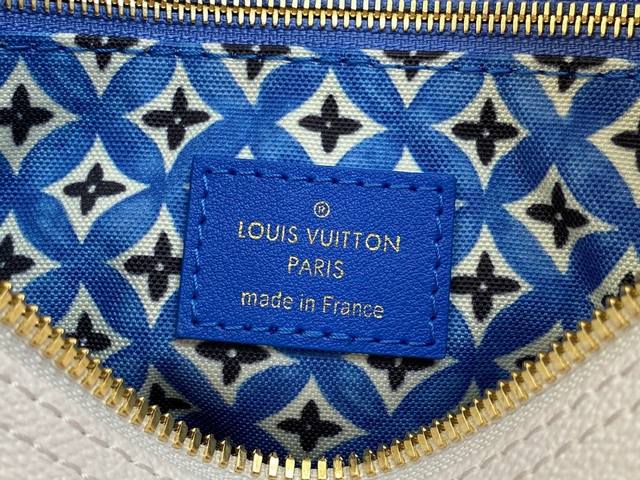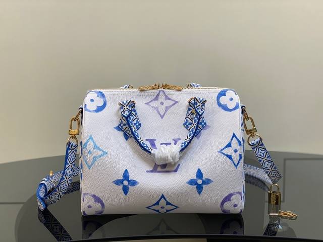 顶级原厂 复刻独家实拍新款M23073蓝,本款 Speedy BandoulièRe 25 手袋令涂层帆布映现 Giant Monogram 图案的粉彩效果,再