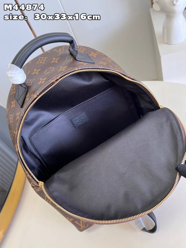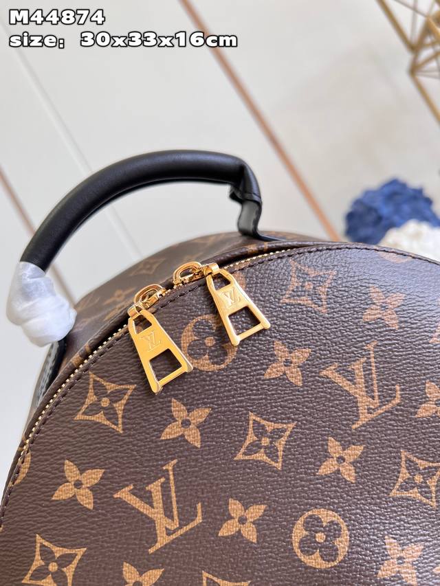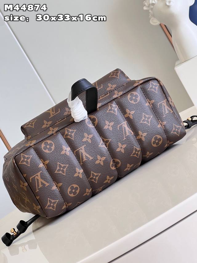 顶级原单 独家实拍 M44874 本款 Palm Springs 中号双肩包为实用背包带去清新之风,是一款颇富潮流感和实用性的都市包袋,适宜活力都市人士背携。由标志性 Monogram 帆布制成,搭配柔软皮革饰边和金属件,内含充裕空间。带有发泡内衬的绗缝包带确保舒适背携。Size:30X33X16Cm 长度 X 高 X 宽