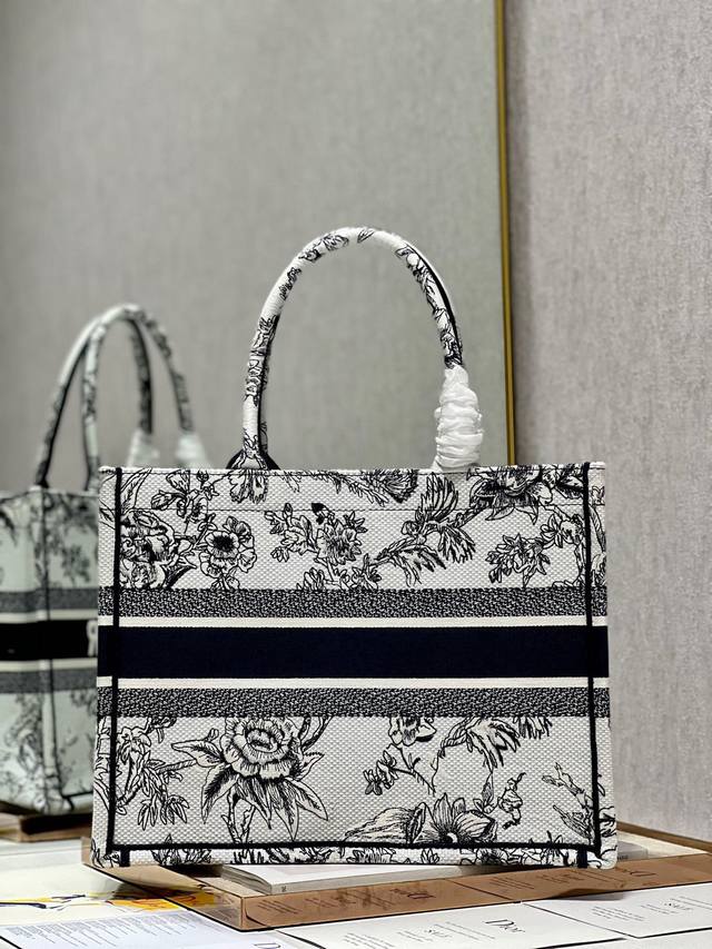 这款Book Tote手袋灵感来自女装创意总监玛丽亚 嘉茜娅 蔻丽 Maria Grazia Chiuri 是体现Dior审美的主打产品。可收纳各种日常用品,全新演绎Bayadere图案混合效果D-Stripes图案刺绣,更具时尚风范。正面饰以“Christian Dior”标志,充分体现了Dior的精湛工艺。