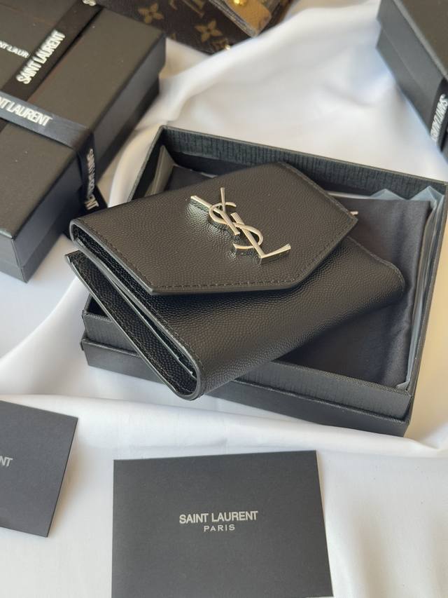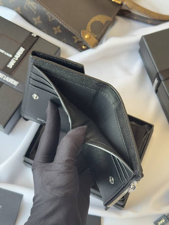 / Ysl 新款三折 鱼子酱 黑色 Slp三折钱包球纹黑色原厂牛皮,背面开叉外袋,六个卡片槽,一个拉链袋,一个纸币隔层,四个票据隔层 型号:582296鱼子酱 尺寸