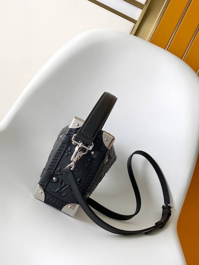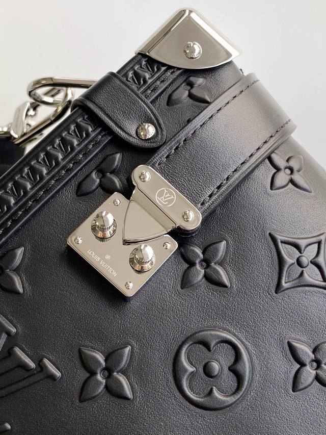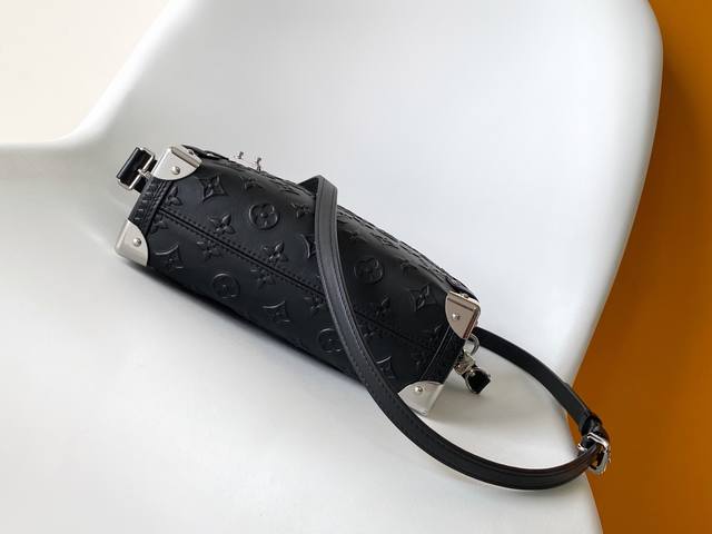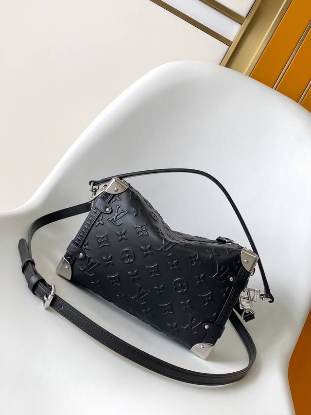 M14572黑色 M14571香槟色 顶级原单 动态163C本款 Side Trunk 中号手袋出自 Monogram Bold 系列,展现艺术总监 Nicolas GhesquièRe 对路易威登经典行李箱的创意诠释。光滑牛皮革包身压印 Monogram 图案,金属包角和 S-Lock 锁扣彰显标志性笔触,可拆卸长肩带实现灵活背携。23.5 X 16.0 X 8.5 厘米 长 X 高 X 宽