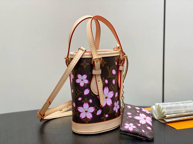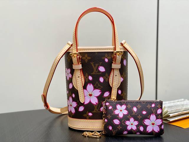 / 原单精品 M13417老花 樱花丝印水桶包 Lv Xtm Nano Bucket 手袋 老花 樱花 村上隆 本款 Nano Bucket手袋以经典Monogra