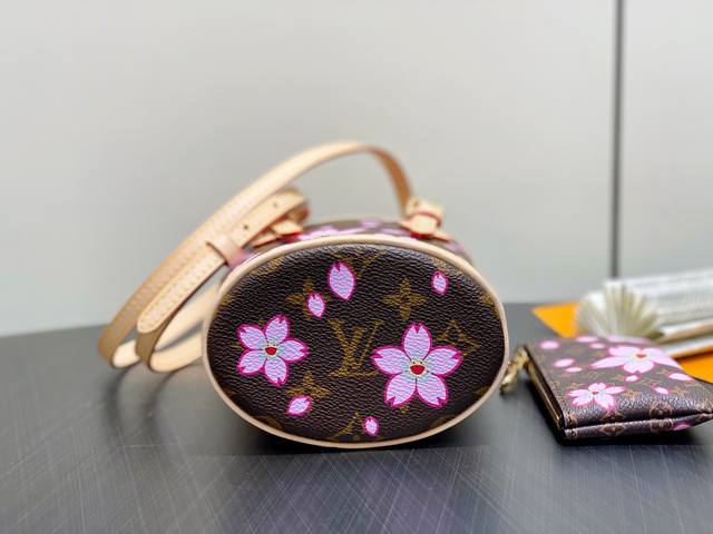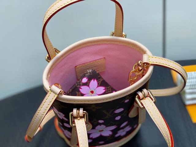 原单精品 M13417老花 樱花丝印水桶包 Lv Xtm Nano Bucket 手袋 老花 樱花 村上隆 本款 Nano Bucket手袋以经典Monogra