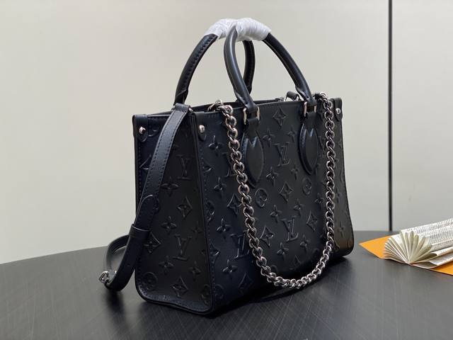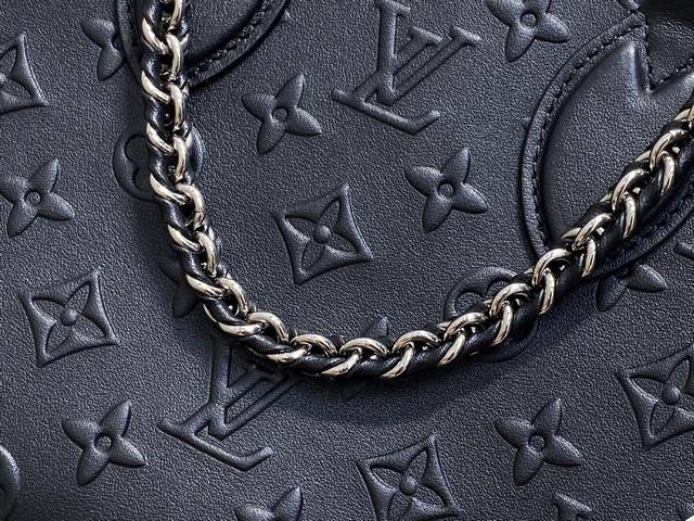 原单精品 M13576黑色 全皮四方包 Onthego 小号手袋 本款 Onthego Hr小号手袋出自 Monogram Bold 系列,以利落构型点睛 2025 春夏秀场。Monogram 压纹皮革包身融入耀目金属件和可拆卸编织链条,充裕空间方便容纳日常所需,成就都市通勤和周末出游佳选。尺寸:19 X 11.5 X 25 厘米。
