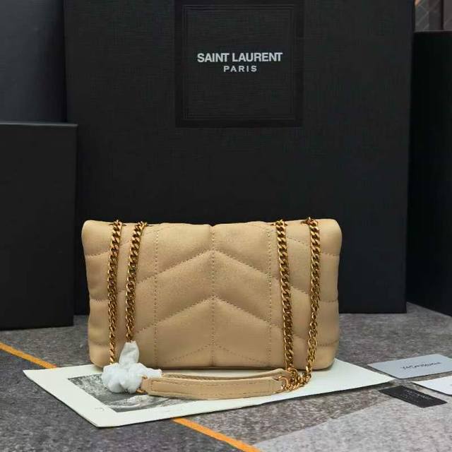 小号8821-升级头层小羊皮版Loulou Puffer 绗缝小羊皮包,100%小羊皮制作,手感柔软细腻,犹如怀抱云朵般的感受;经典的Y家Logo、链条及扣眼五