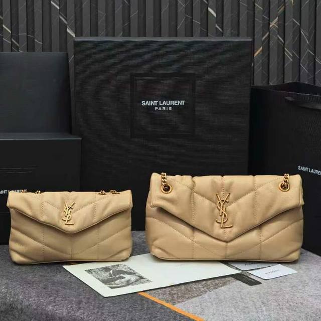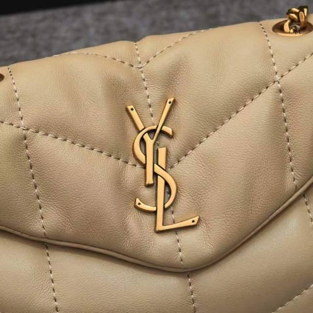 小号8821-升级头层小羊皮版Loulou Puffer 绗缝小羊皮包,100%小羊皮制作,手感柔软细腻,犹如怀抱云朵般的感受;经典的Y家Logo、链条及扣眼五金均采用银色拉丝金属材质,哑光雾面特有质感,小号特别轻巧,又实用,特别适合夏天的使用